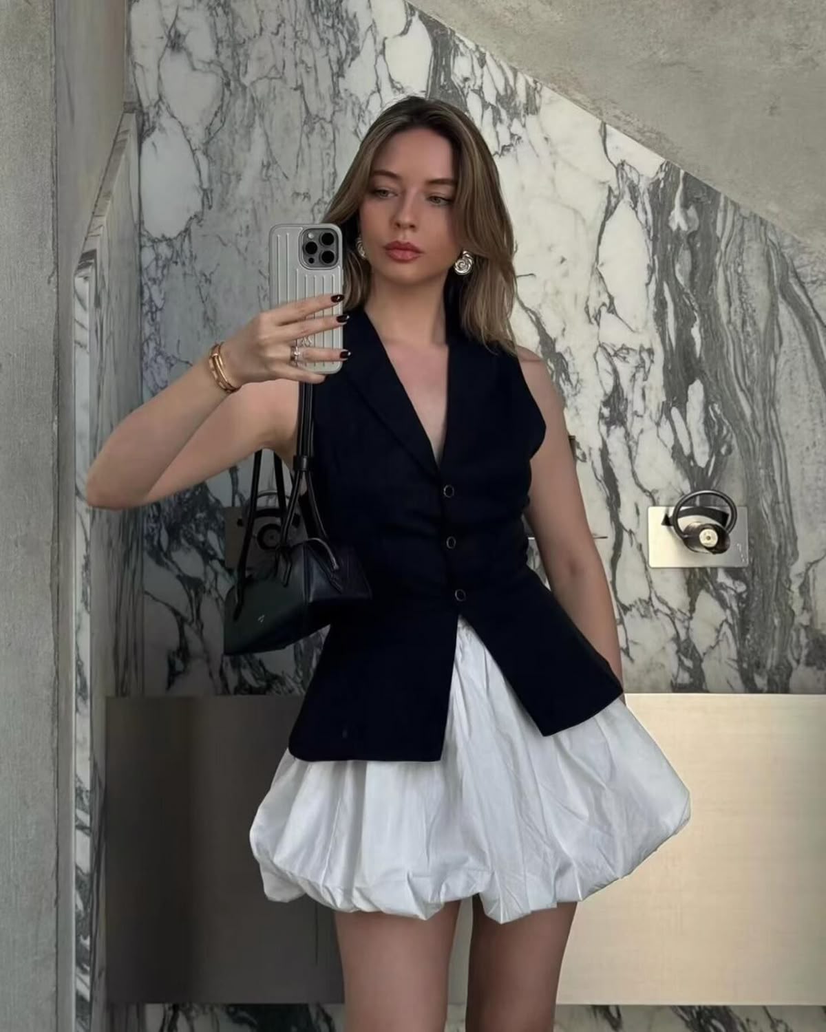 The key to making balloon skirts appropriate for work lies in balance. Their dramatic shape draws attention, so pairing them with tailored and structured pieces creates a polished effect. A crisp button-up shirt or fitted blazer complements the fullness of the skirt, maintaining a refined and professional look. Opt for neutral or muted tones such as beige, navy, or black to make the design more subtle for the office while keeping the focus on the silhouette.