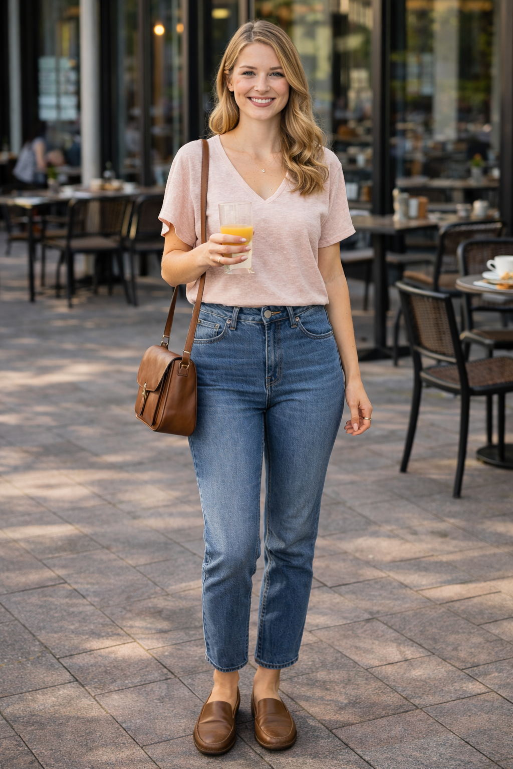 Accessories can introduce a small amount of personality. A simple handbag, sunglasses, or a light bracelet can complete the outfit without overwhelming it.