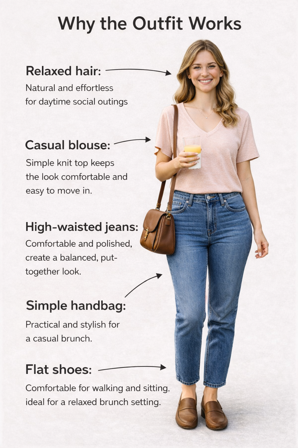 A balanced brunch outfit often starts with comfortable but structured clothing.
