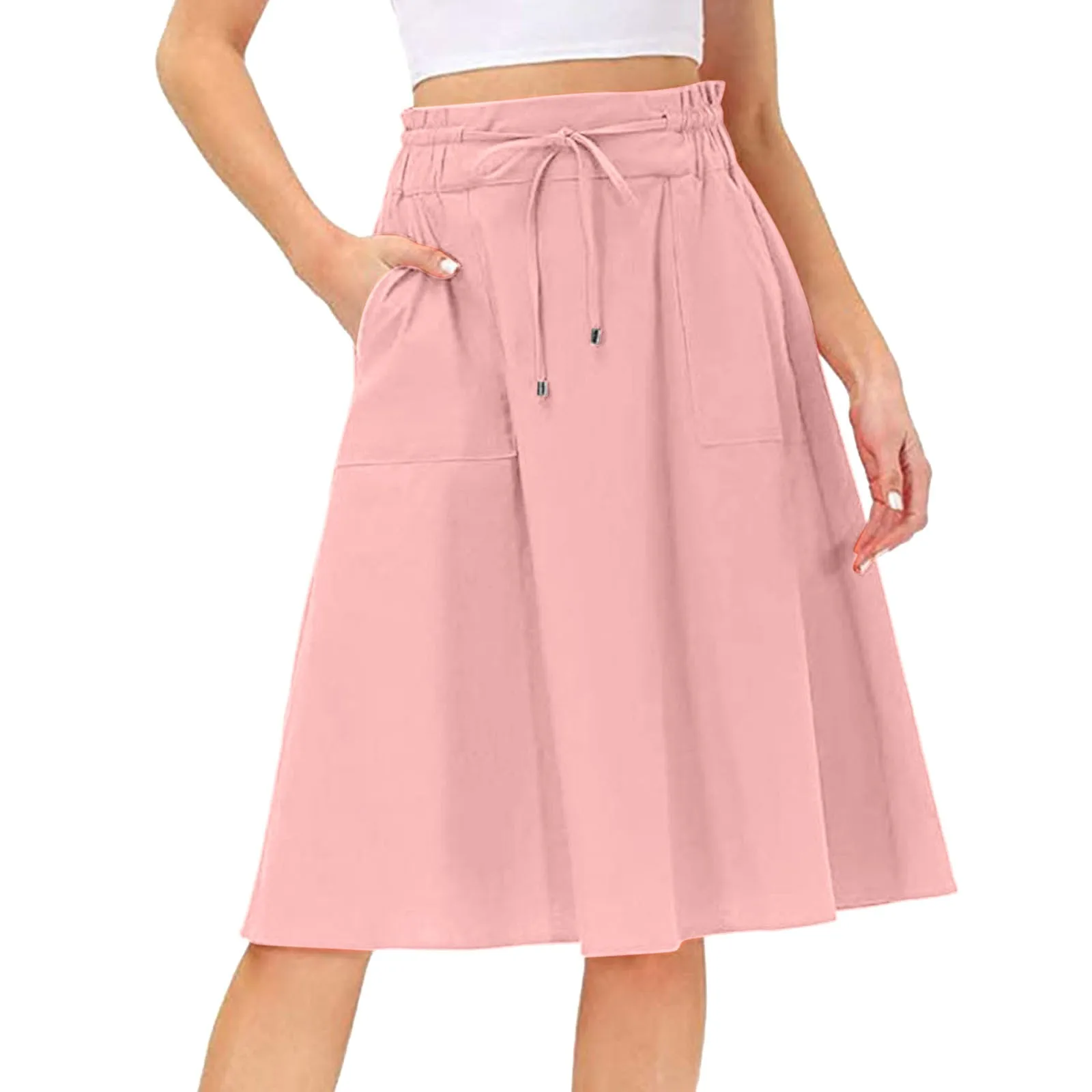 Fashion Wide Leg Long Pants Summer Autumn Elastic High Waist Loose Trouser Big Swing Pants Beach Skirt Women's Elegant Pants