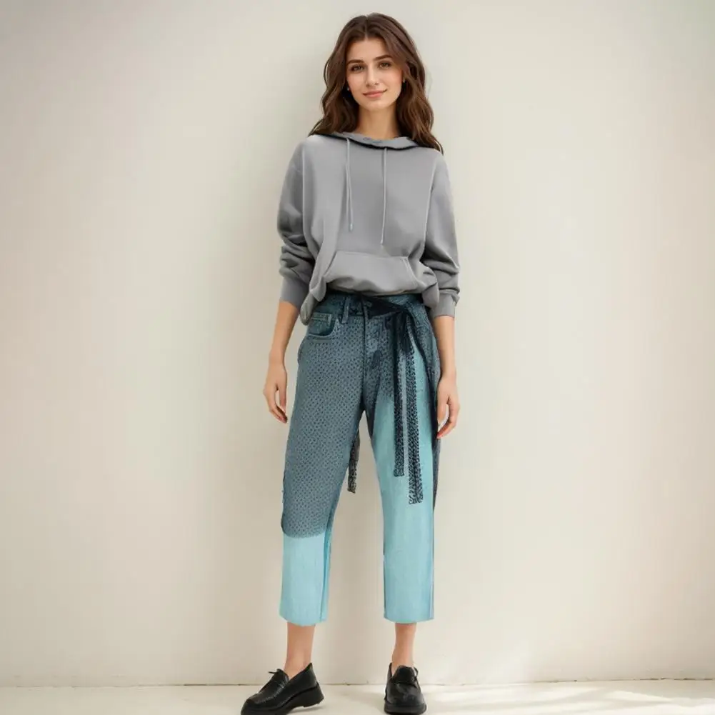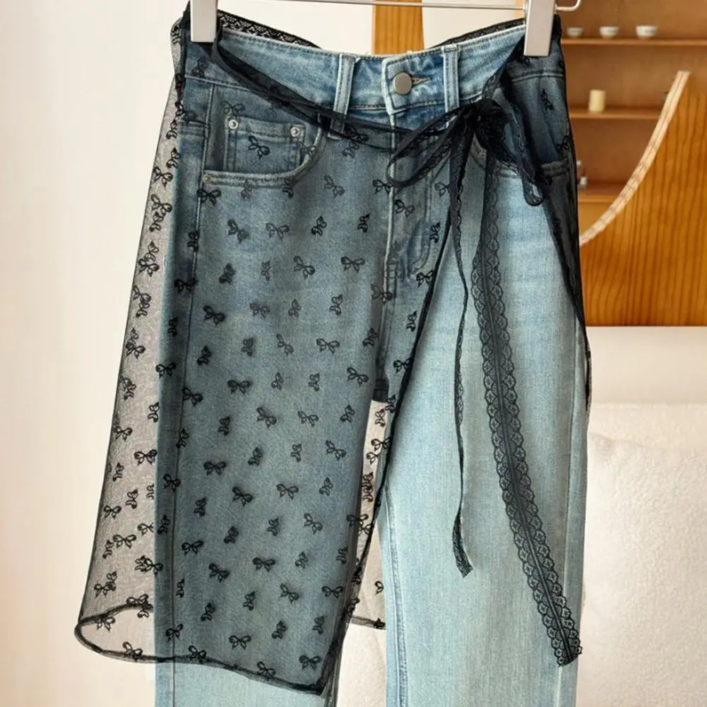 Gauze Skirt with Lace Embroidery Gauze Skirt with Lace-up Detailing Embroidery Bowknot Pattern Streetwear Apron Wrap for Women