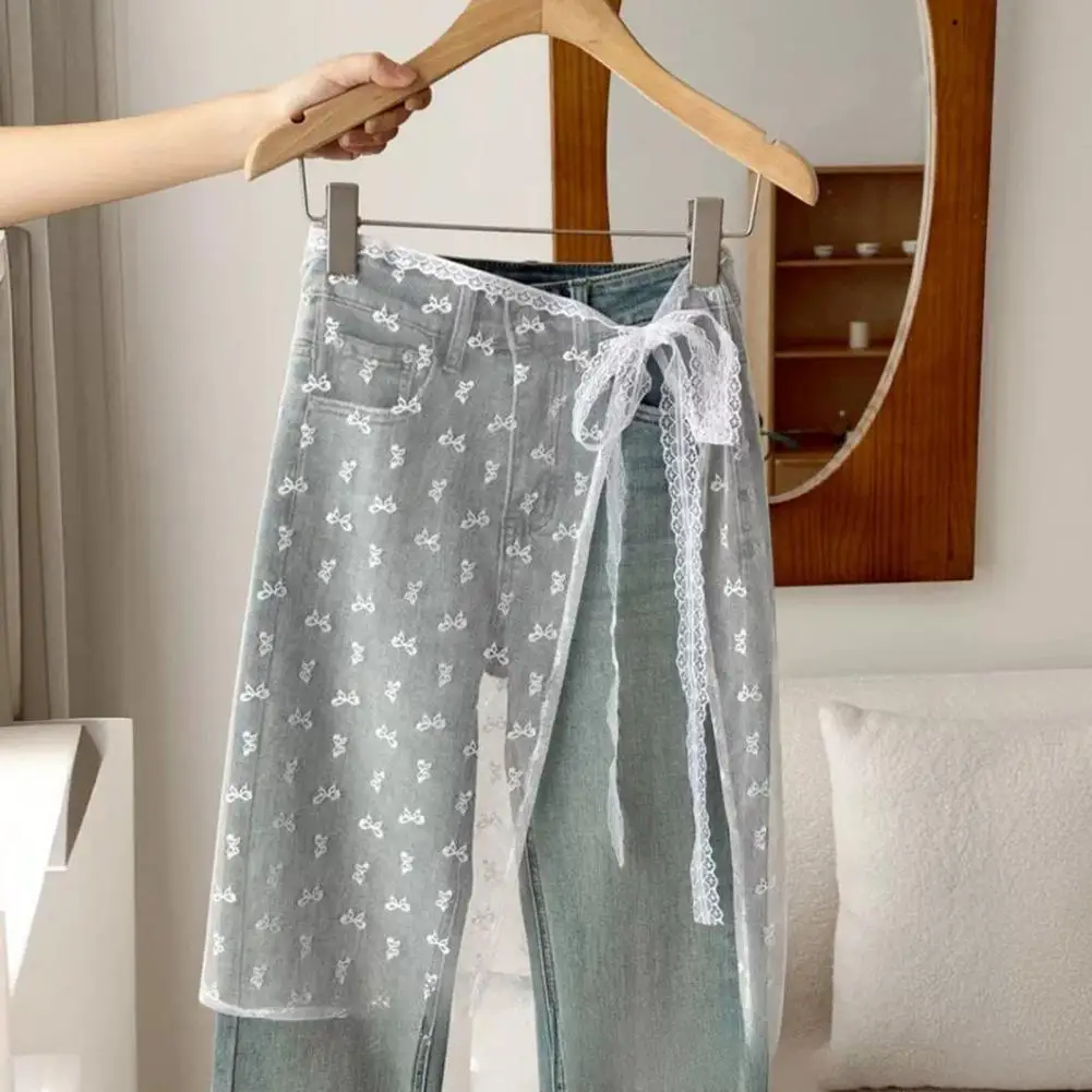 Name | Gauze Skirt with Lace Embroidery Floral Embroidered Gauze Skirt Gauze Skirt with Lace-up Detailing Embroidery Bowknot Pattern |