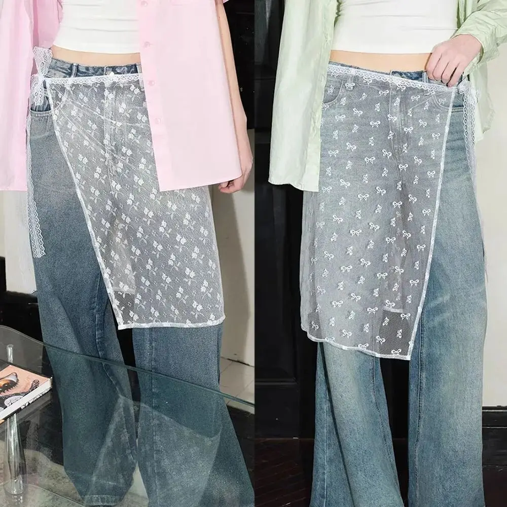 With Tie Up Lace Layered Gauze Skirt Matching Pants Y2k Spicy Girl Stacked Skirt Open Skirt Streetwear Apron Wrap Skirt Girl