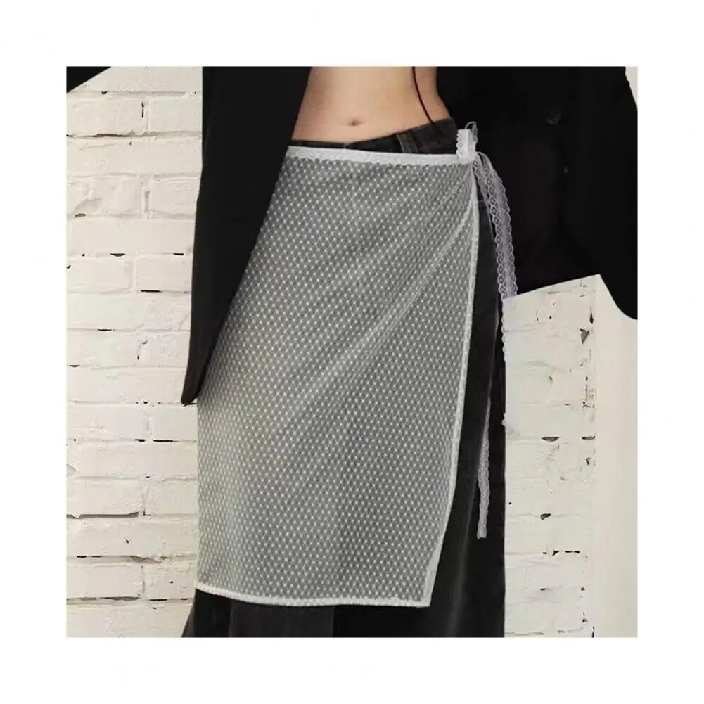 Women Lace Layered Skirt with Tie Up Embroidery Pattern Girl Stacked Jeans Wrap Skirt платье женское 2024
