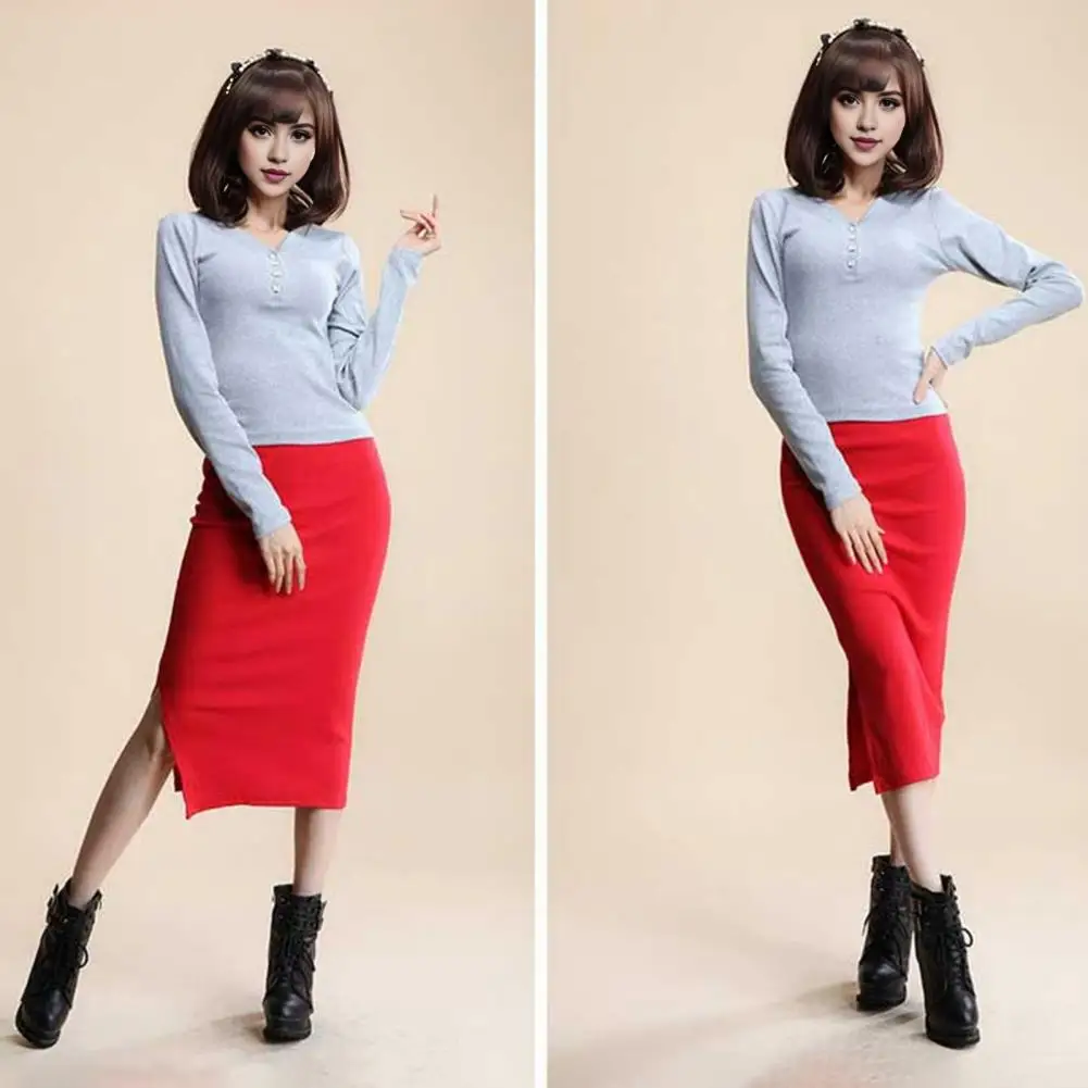 1Pc Soft Women Midi Skirt Elegant Knitting Women's Midi Skirt with Back Split Design Hip-hugging Style Office Skirt for Ladies