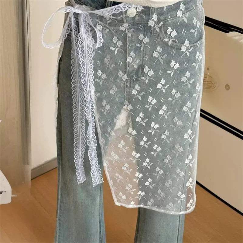 Name | One Piece Korean Floral Embroidery Lace Layering Wearing Single Piece With Half Body Gauze Skirt Butt Curtain Inside 2024 New |