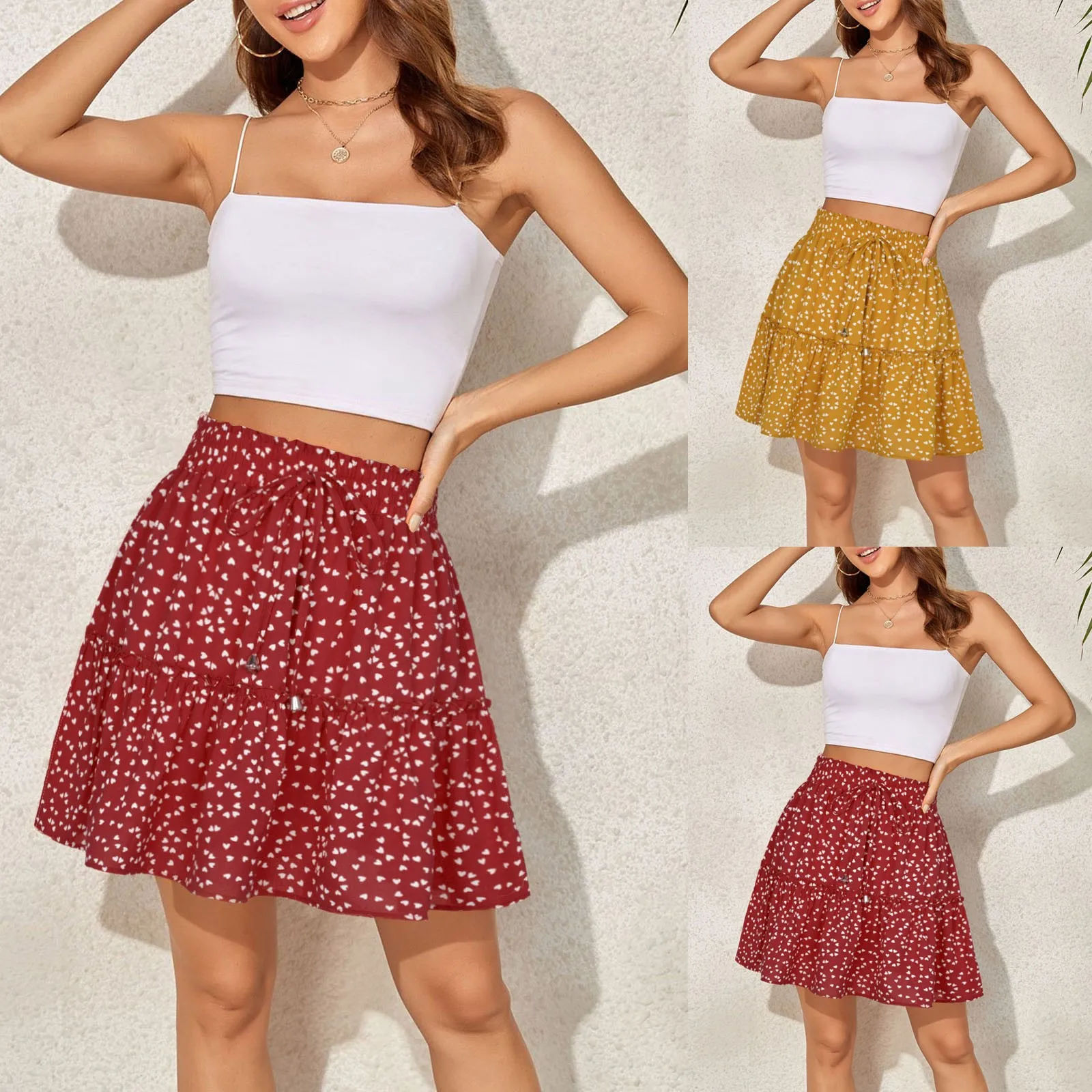 Women'S Summer Skirts Bohemian High Elastic Waist Floral Print Mini Skirt Pleated Ruffle Printed Vintage Dress For Ladies 2024