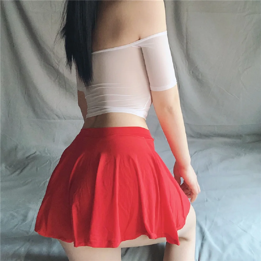 Sexy Fashion Solid Color Girls High Waist Ice Silk Skirt Frills Skirt Short Mini Skirts