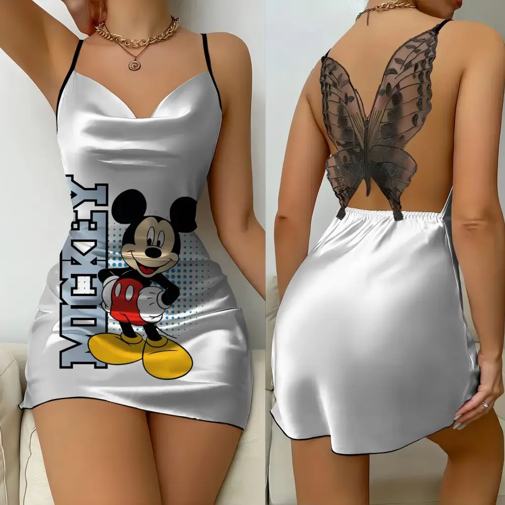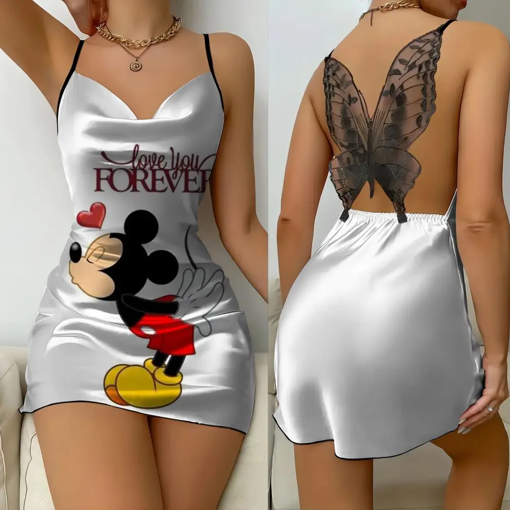 Bow Mini Party Skirt Disney Embroidered Satin Sleep Dress Women's 2024 Summer Sexy Lace backless Fashion Style