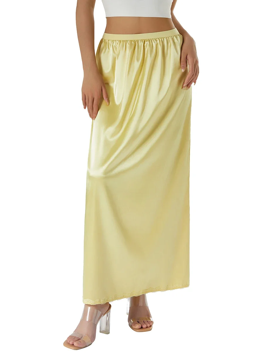 Women Half Slip Underskirt Solid Color Elastic Waist Inner Lining for Midi Skirt Long Underskirt for Ladies Outfit Summer Skirts