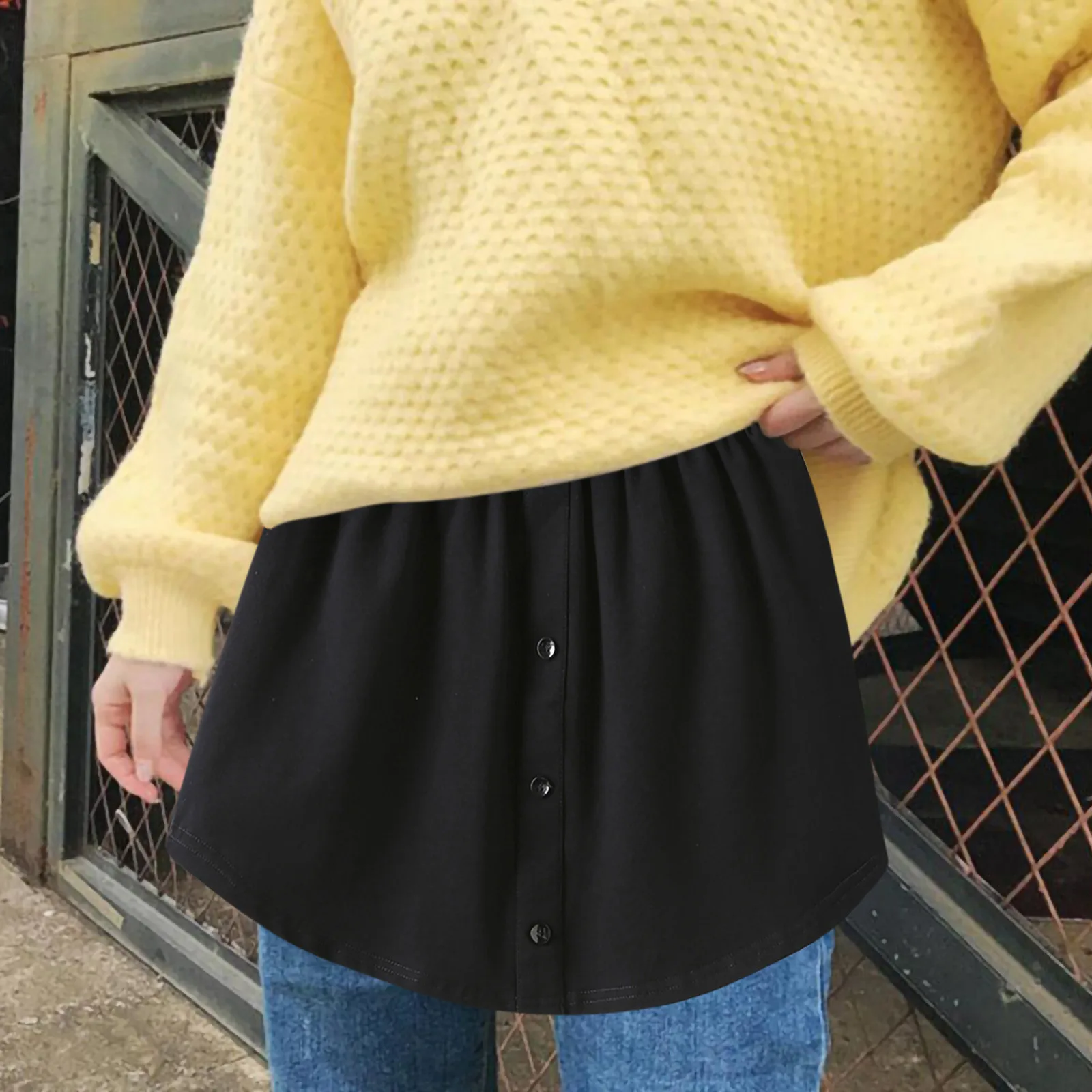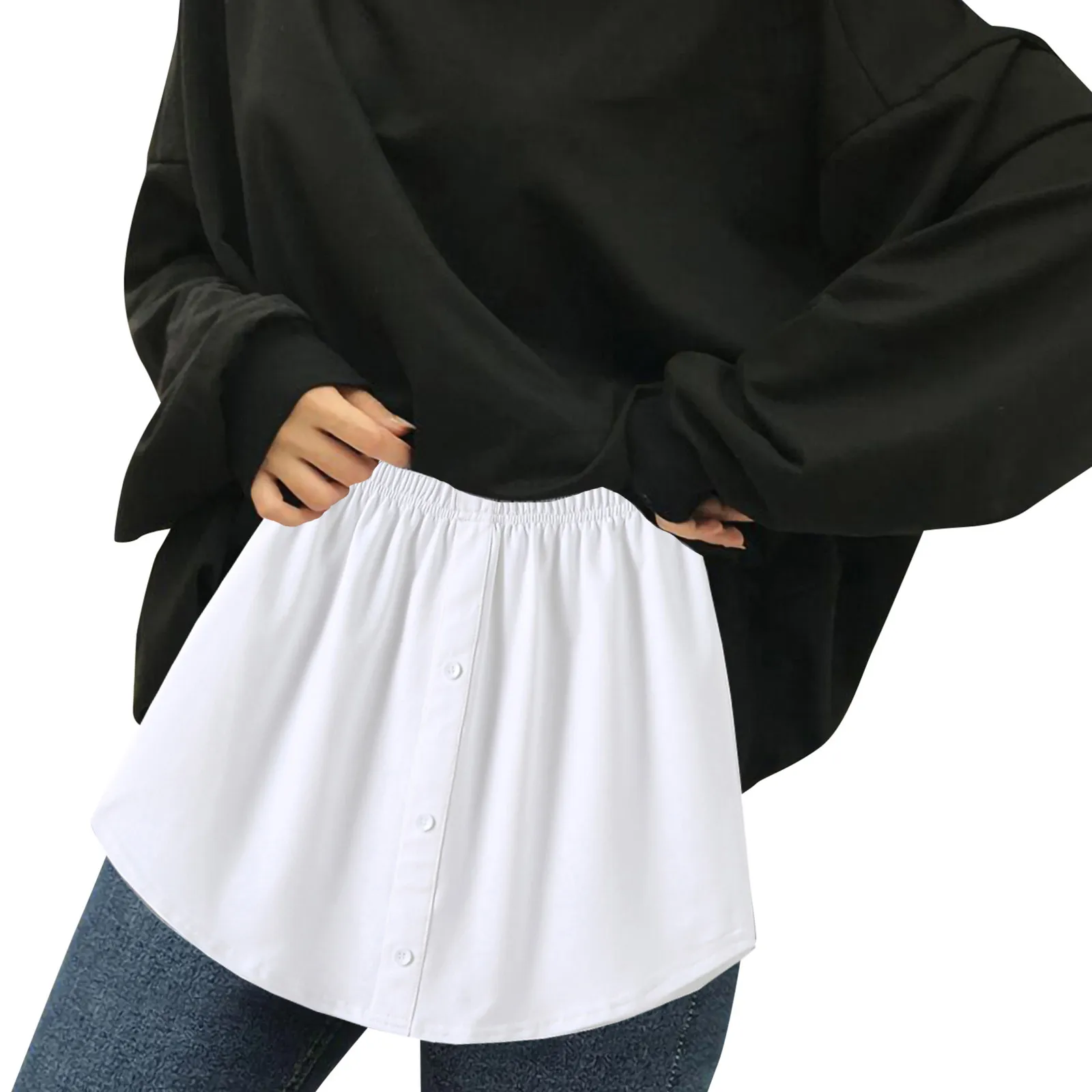 Name | Women Extender Fake Shirt Hem Skirtr Solid Color Button Buttock Skirt Detachable Half Slips Stretch Irregular Tail Hem Petticoat |