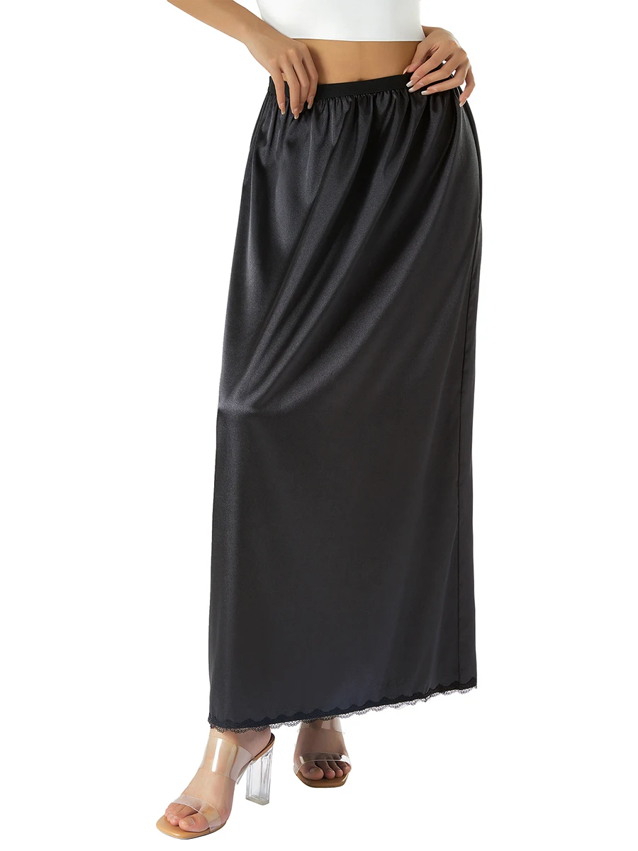 Women Half Slip Underskirt Solid Color Elastic Waist Inner Lining for Midi Skirt Long Underskirt for Ladies Outfit Summer Skirts