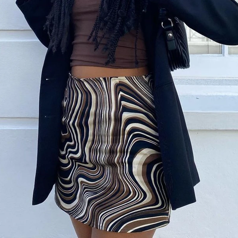 Women Chic Vintage Zebra Pattern Short Skirt High Waist 2024 Summer New Fashion Mini Skirt Holiday Straight Elegant A-line Skirt