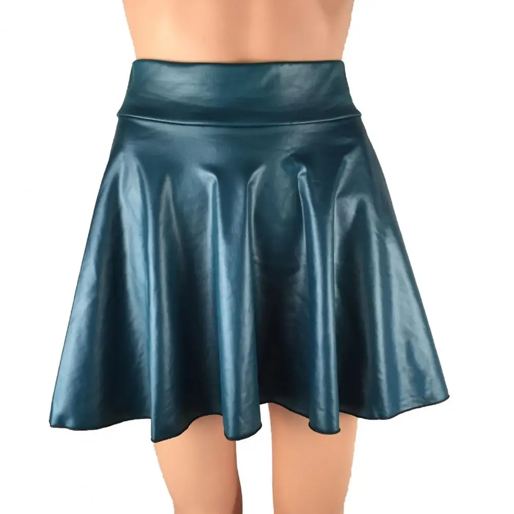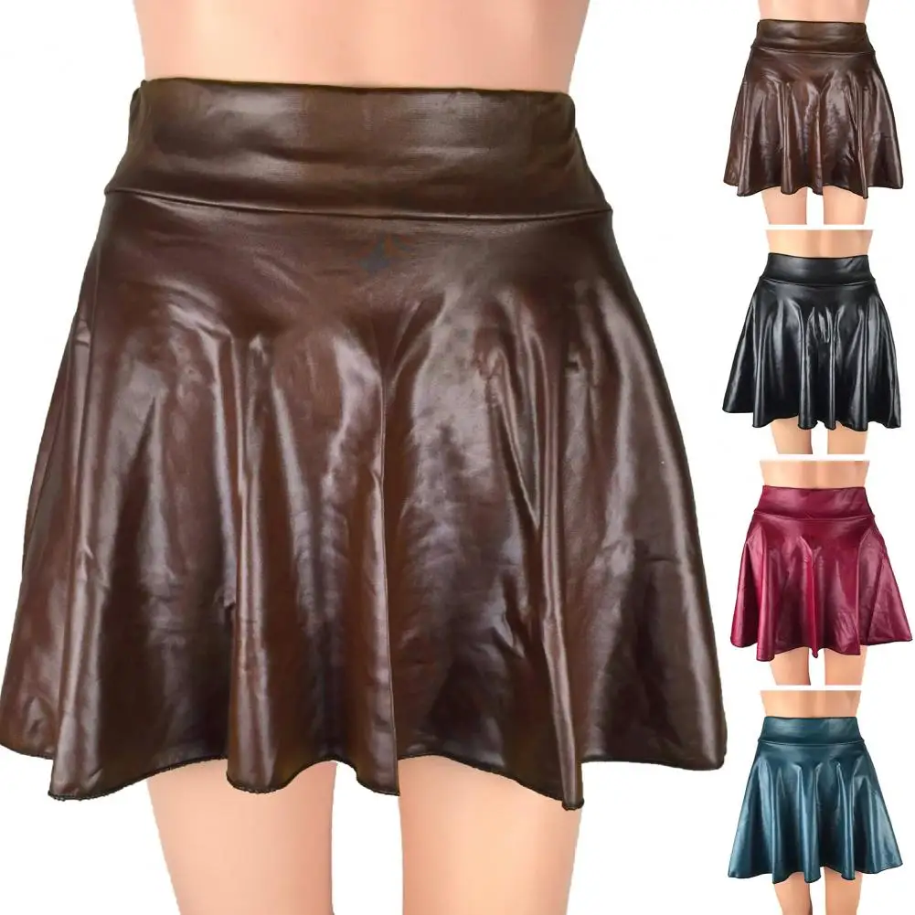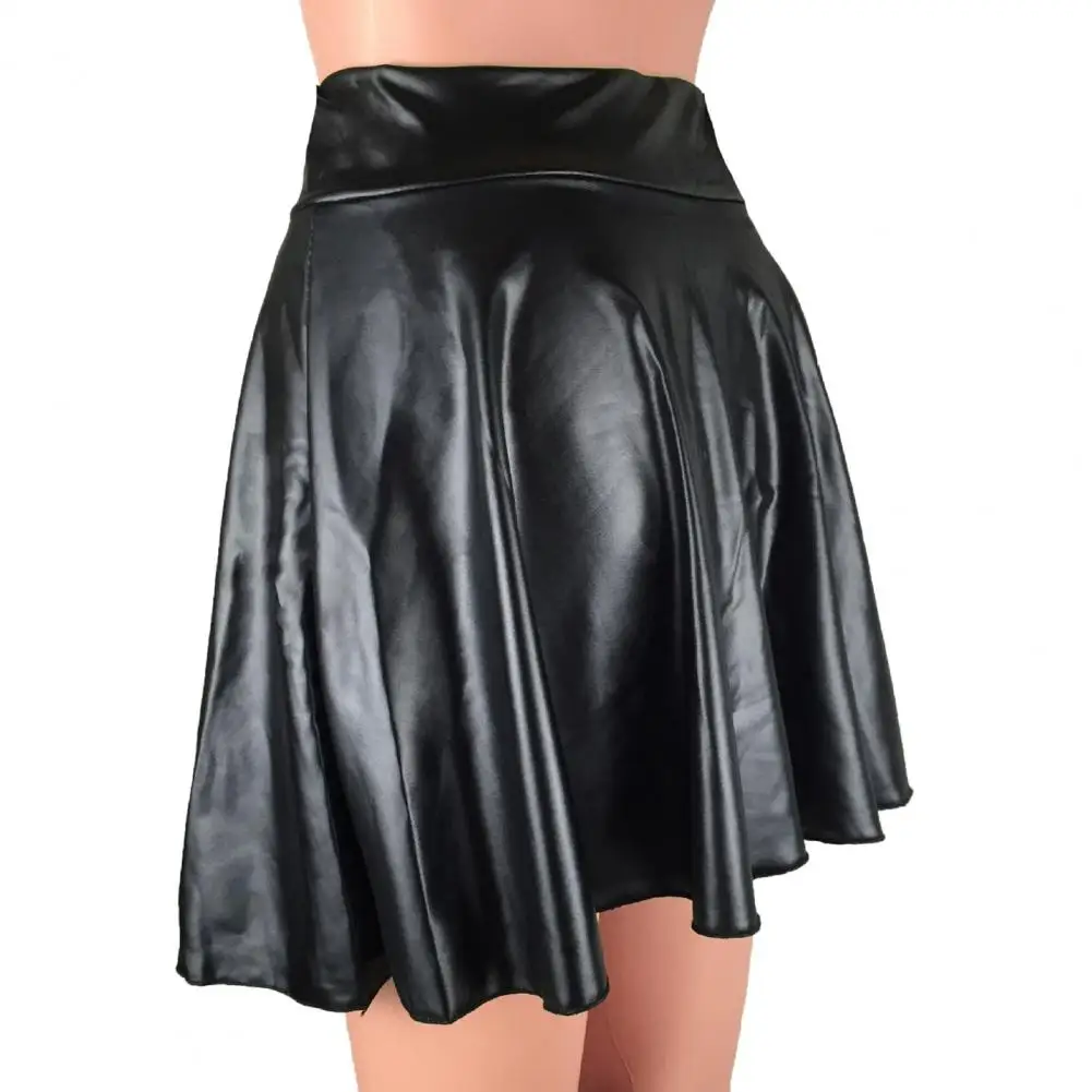 Women Mini Skirt Loose Hem Solid Color High Waist Hidden Zipper Dress-up Faux Leather Summer Skirt Women Clothes Streetwear