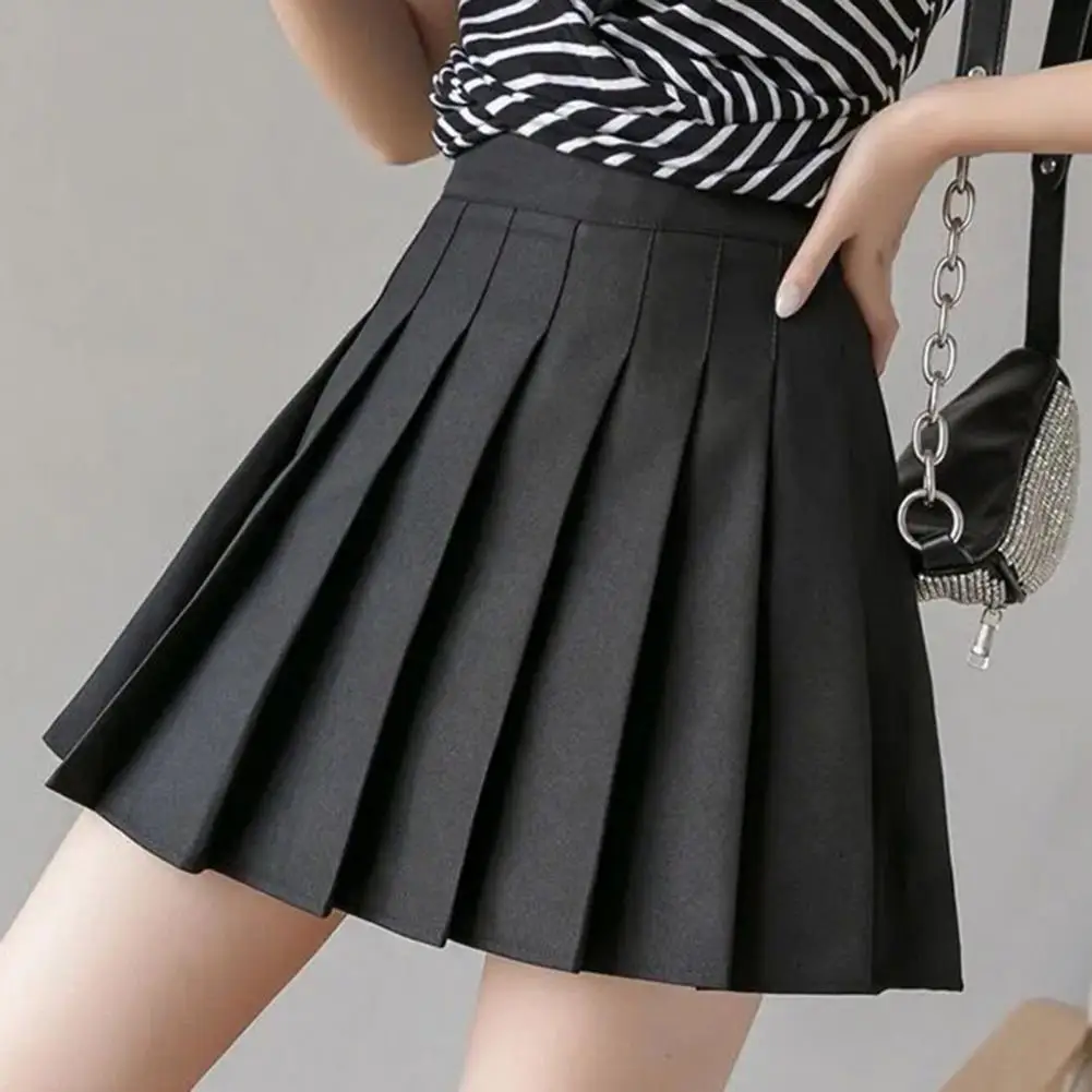 Summer Women High Waist A-line Loose Hem Skirts Harajuku Korean Style Black Mini Pleated Skirts For Women юбка летняя