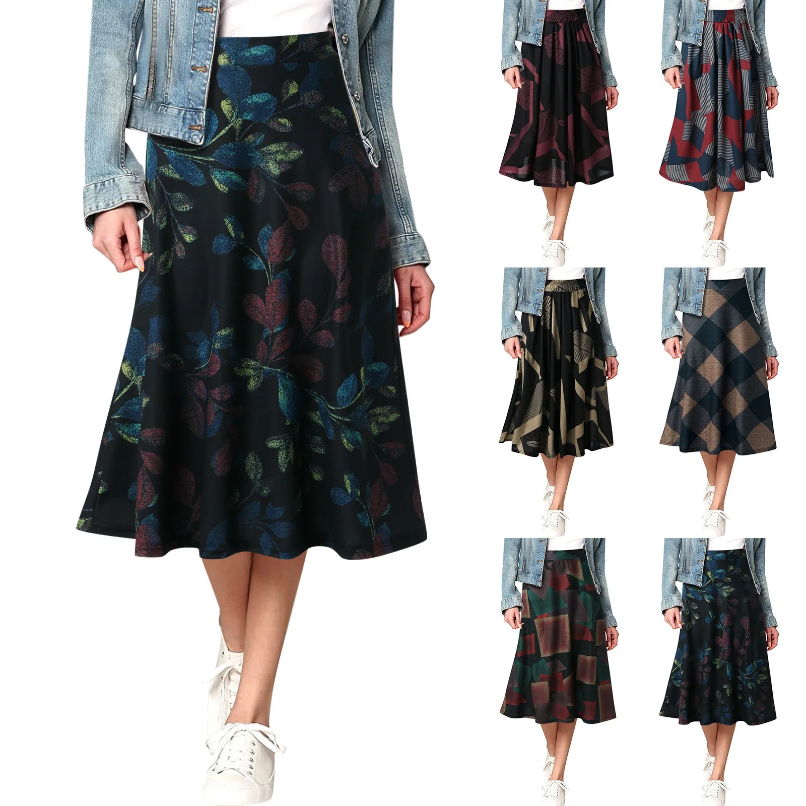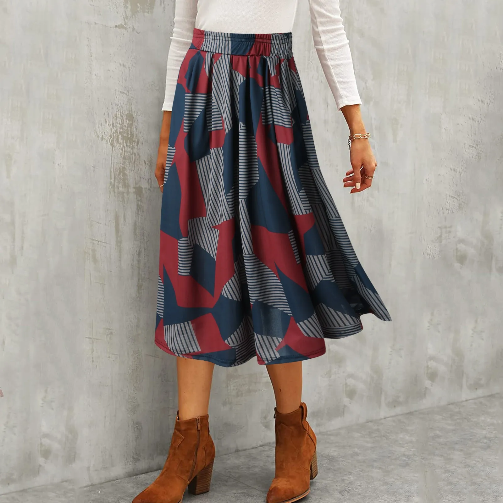 Name | Women's New Fashion Printed Skirt Versatile High Waisted Mid Length Half Body Skirt Casual Loose Elastic Waist Pocket Half Skirt |