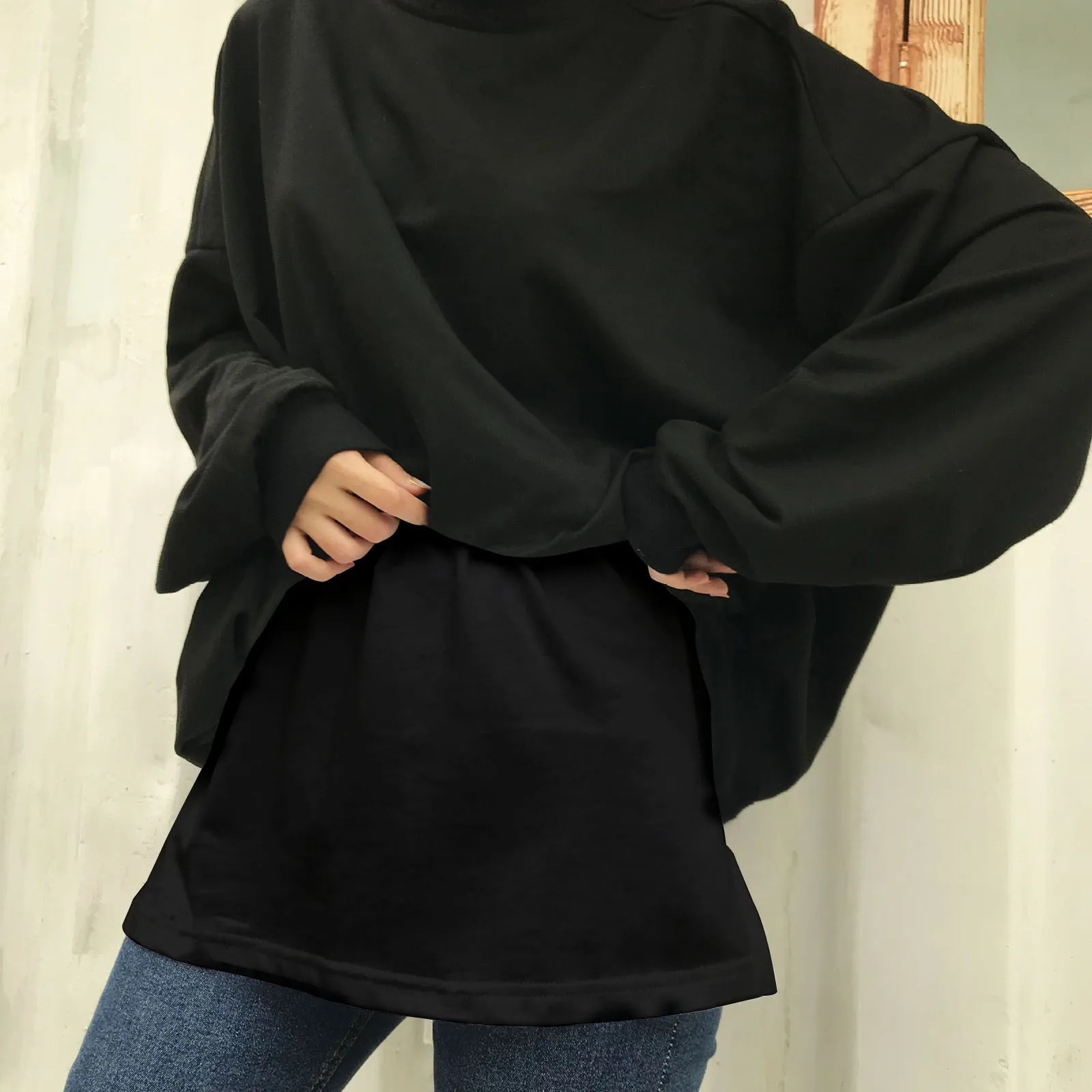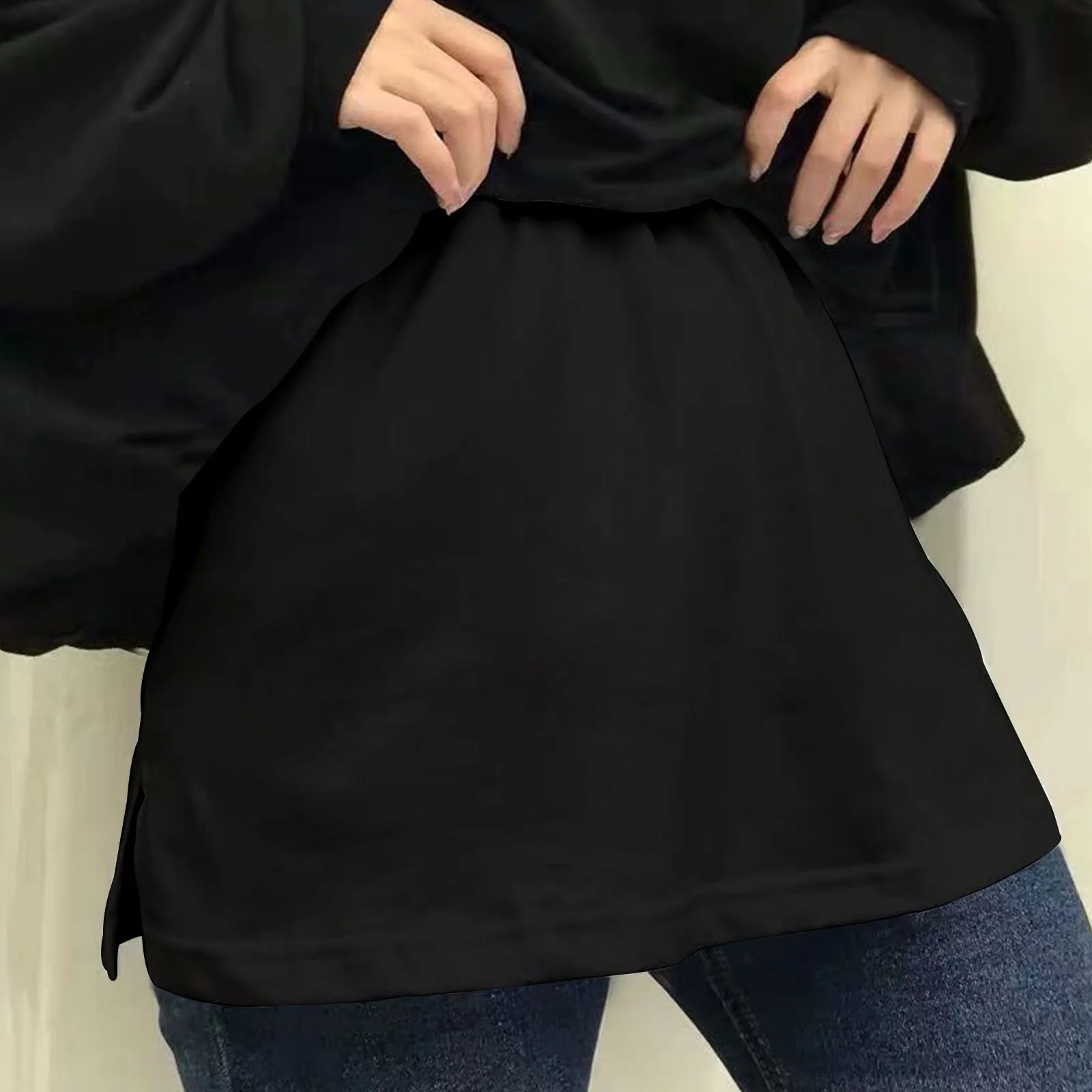 Name | Ladies Fake Hem Sweatshirt The All- In Short Skirt Korean Style Bottom Half Body Skirt Elastic Waist Plus Size Solid Color Shirt |
