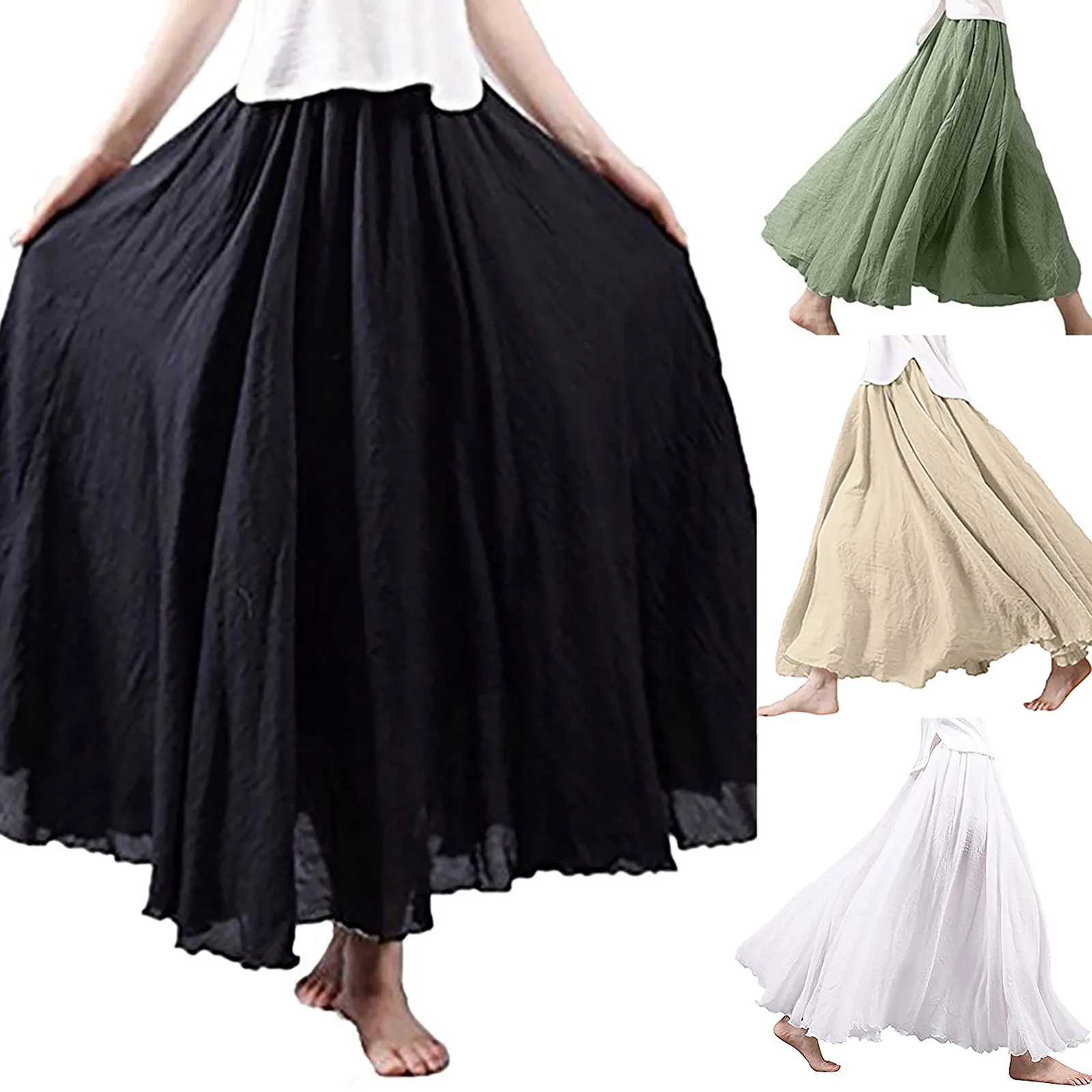 Name | Elastic Waist Long Style Skirts Bohemian Cotton and Linen Loose Women's Half Bodies Skirts Solid Color Women's Casual Dresses |