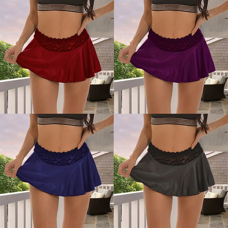 Faux Lace Casual Ultra Mini Sexy Skirts Women Dance Party Club Wear Solid Color Pleated Short Skirts Summer Outdoor Beachwear
