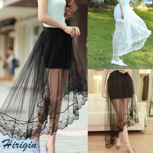 Skirt Women Summer Casual Elastic Waist Double Layer Lace Irregular Long Maxi Skirt faldas jupe femme