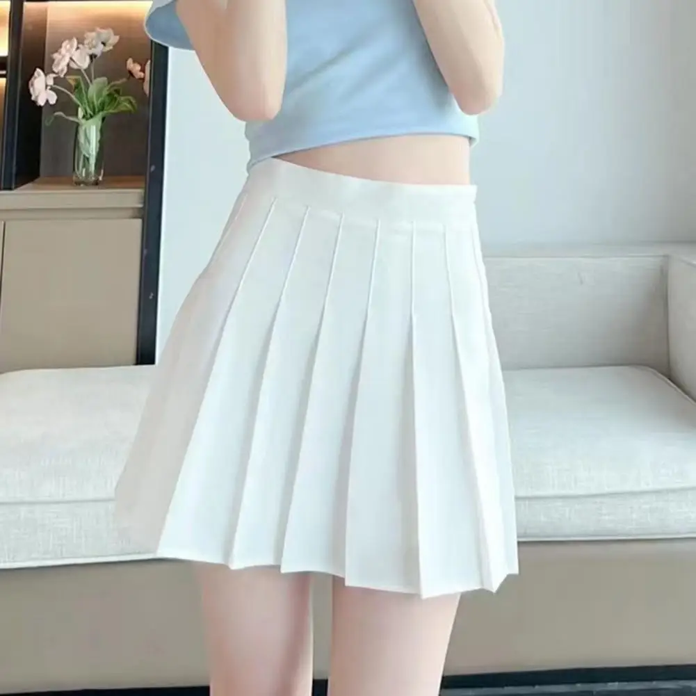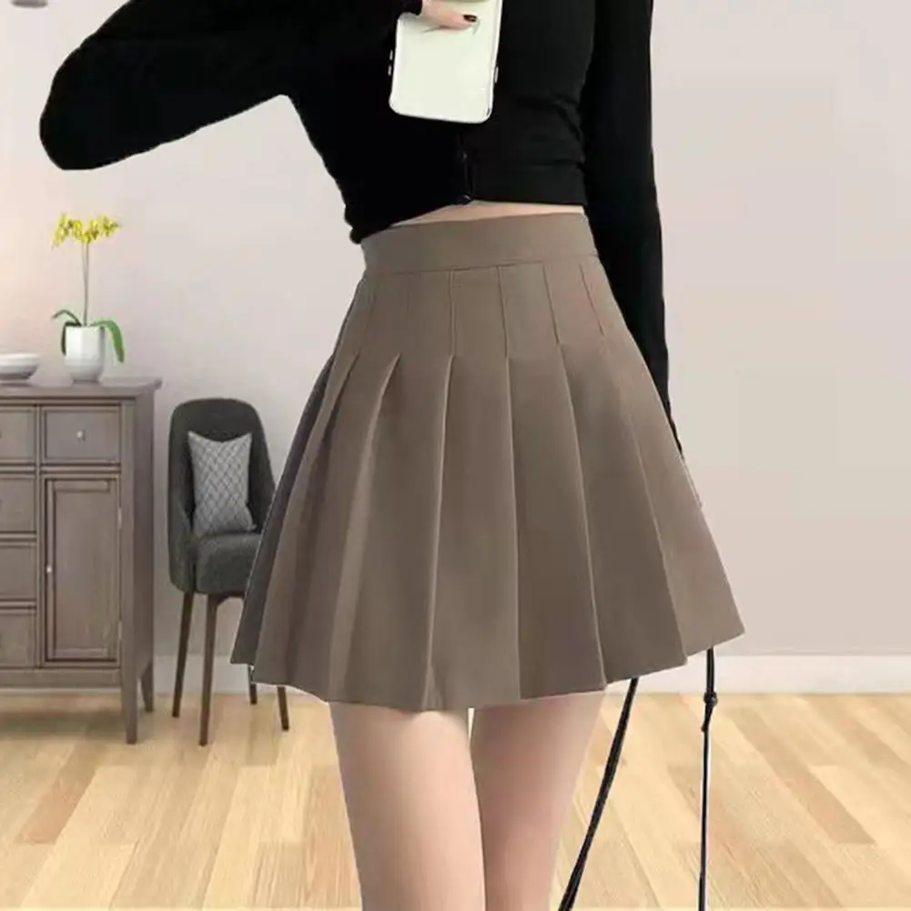 Attractive Pure Color A-Line Short Skirt Hidden Zipper Mini Skirt Women Trendy Short Pleated Skirt Female Clothes