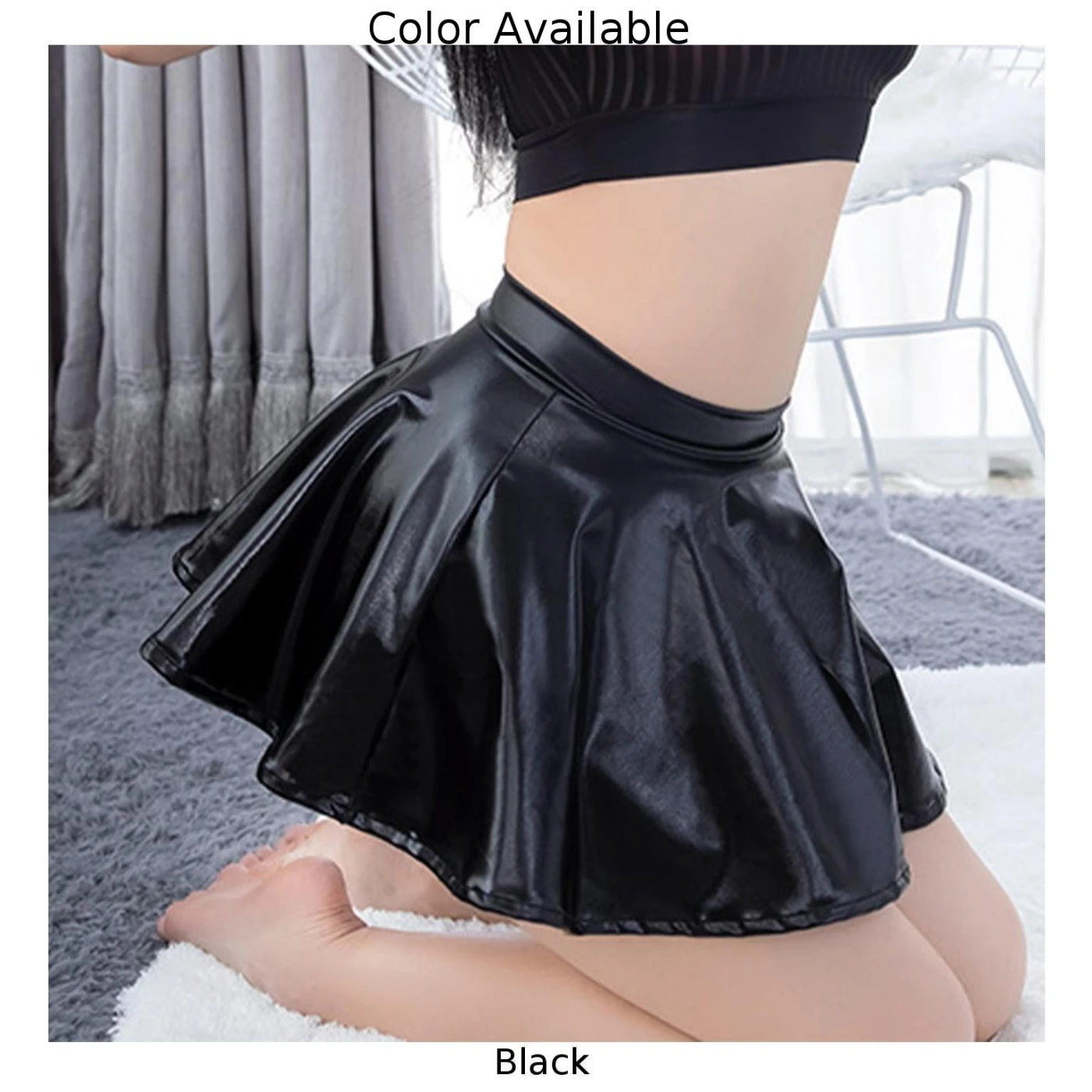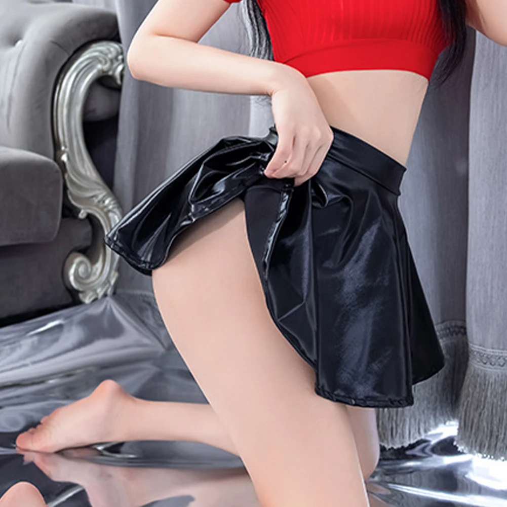 Sexy Women's Lingerie Shinny Black PU-Leather Pleated Skirt Super Mini Short Skirts Club Party Costume Skirts Woman Clothing