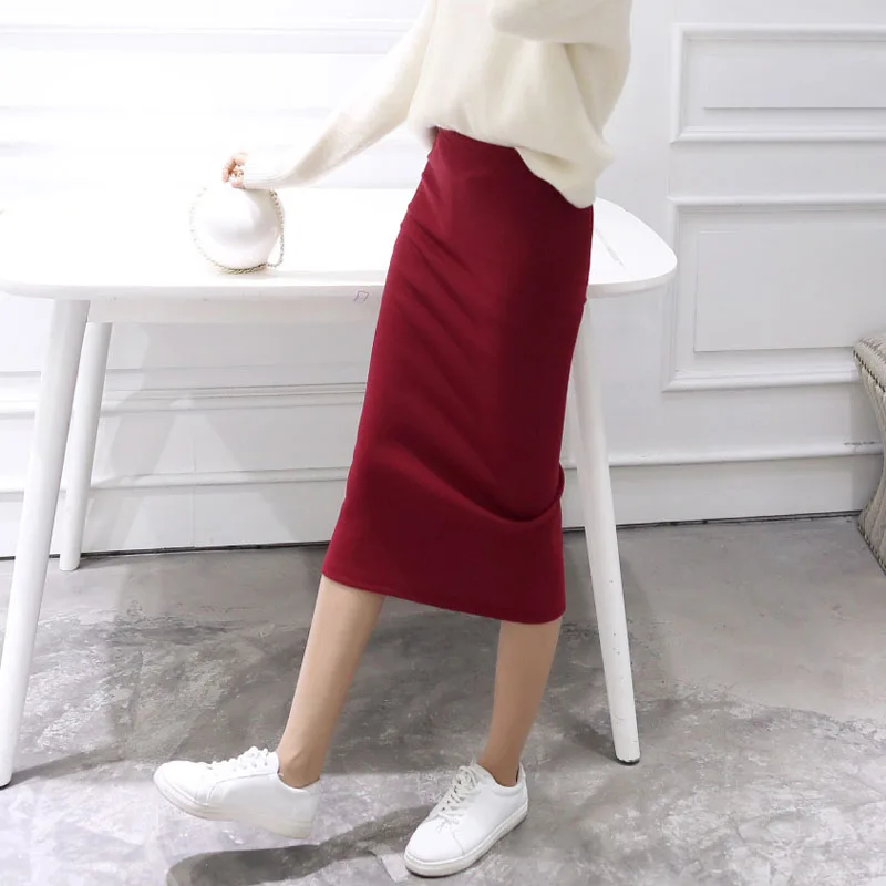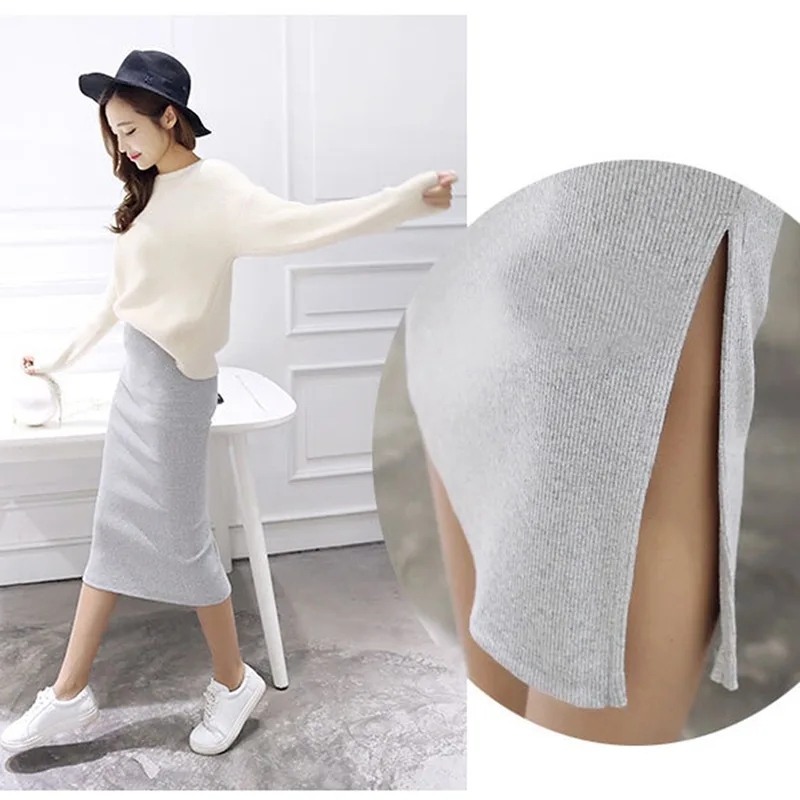 Bodycon Skirts Women Split Skirt Midi Slim Saias Pencil Skirts For Women Female Knitted Skirt Women'S 2023 Autumn Summer Faldas