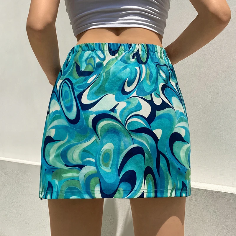 CDJLFH Women Harajuku Vintage Paisley Printed Skirt Sexy Straight Split Green Y2K Mini Skirt Summer Cute Korean Version Vestidos