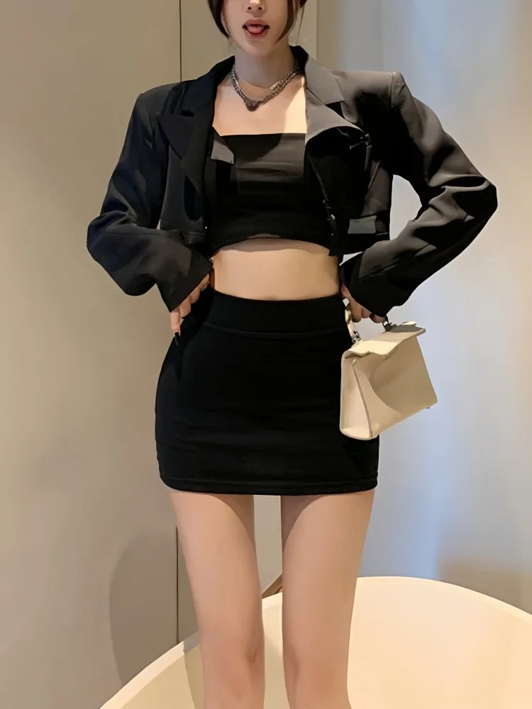 FREEAUCE Korean Style Sexy Casual Pencil Mini Short Skirts High Waist Long Night Club Black White fashion clothing for Women
