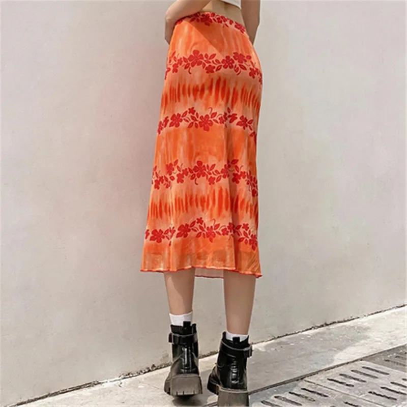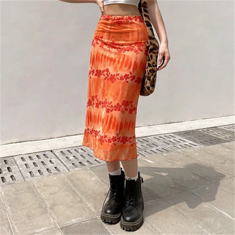 Summer Bohemian Floral Print Midi Skirt for Women High Waist Bodycon Slim Fit Long Pencil Skirt Y2K Aesthetic 90s Streetwear