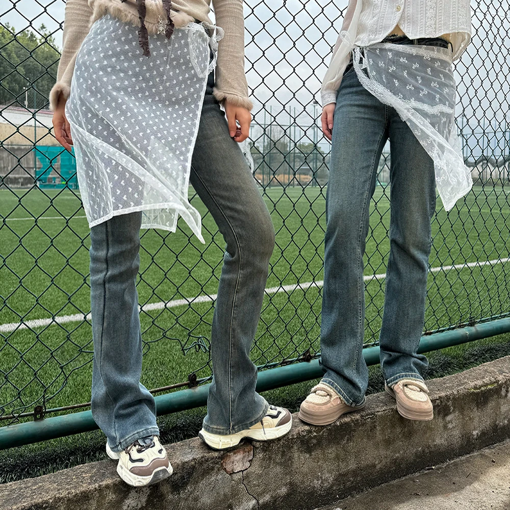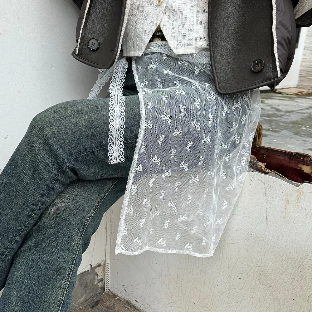 2024 Ins Blogger Unique Lace Layered Gauze Skirt with Tie Up Korean Version Spicy Girls Jeans Apron Ladies Open Skirts Y2k