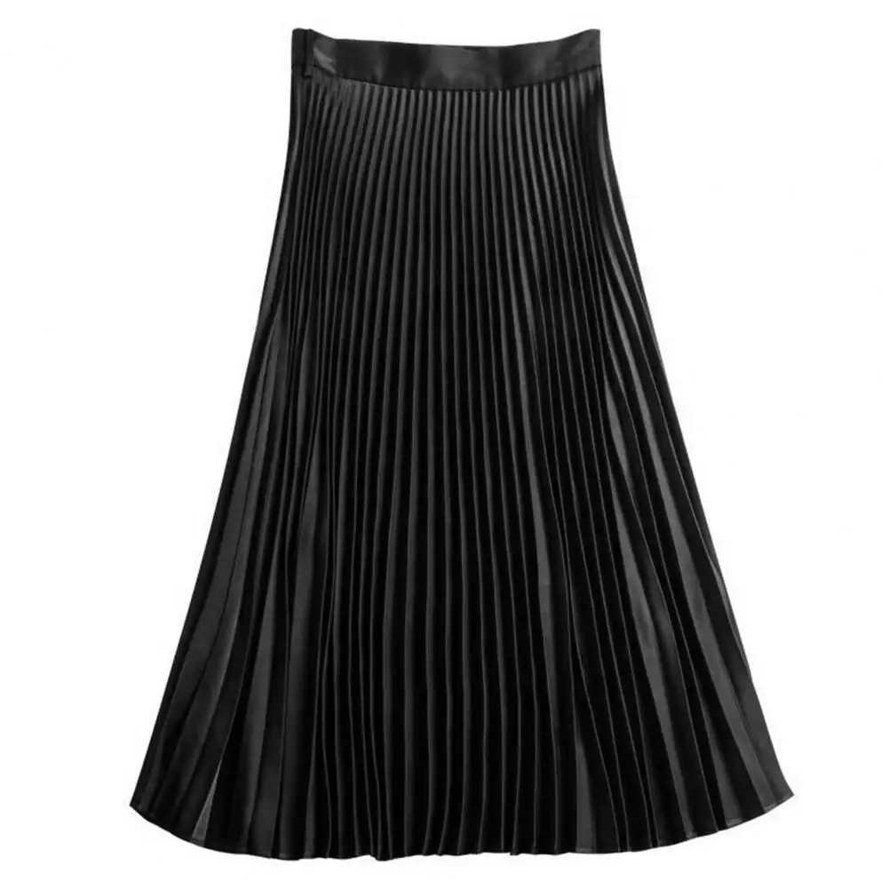 Vintage Midi Skirt Comfortable Long Skirt Elegant Women's Vintage Pleated A-line Midi Skirt with Wide Elastic Waistband for A