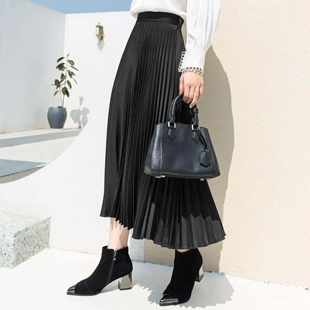 2024 Autumn Vintage Pleated Midi Skirt Elastic Waist A-line Slim Luxury Midi Skirt Elegant Satin Pleated Flowy Long Skirt Dress