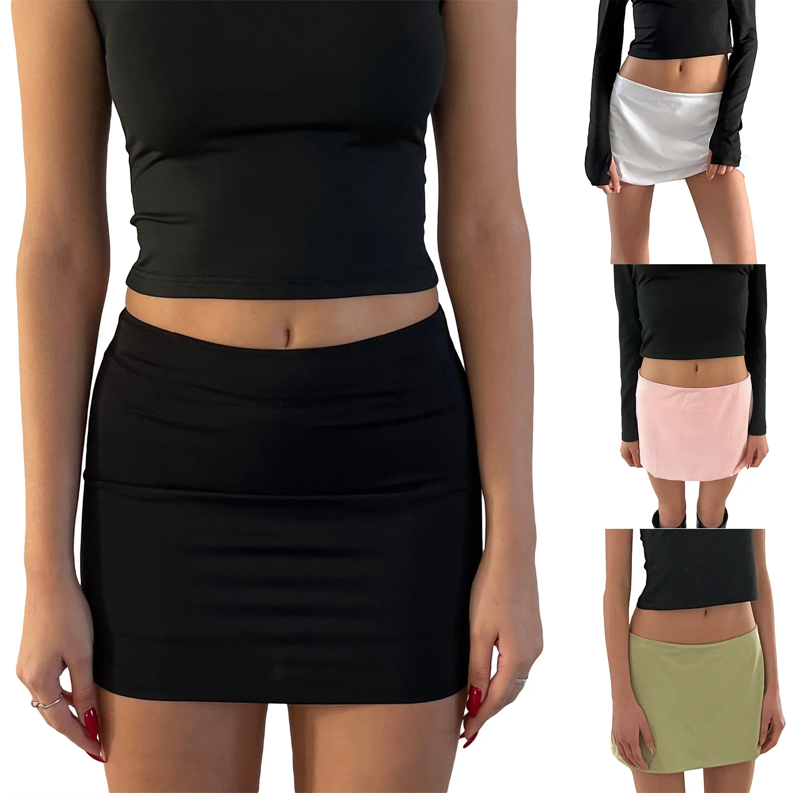 Women Black Basic Mini Skirt Low Waist A-line Casual Stretchy Girls Aesthetic Short Bodycon Skirts Summer All-match Clothing