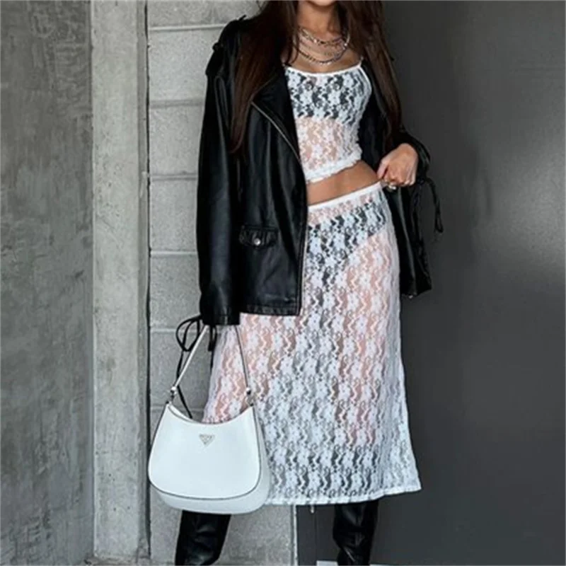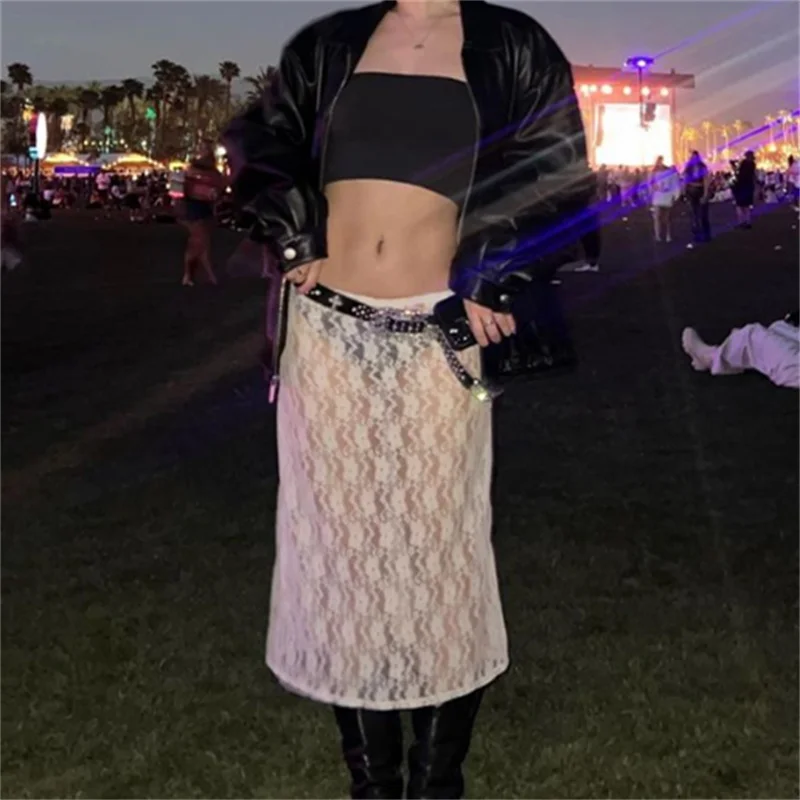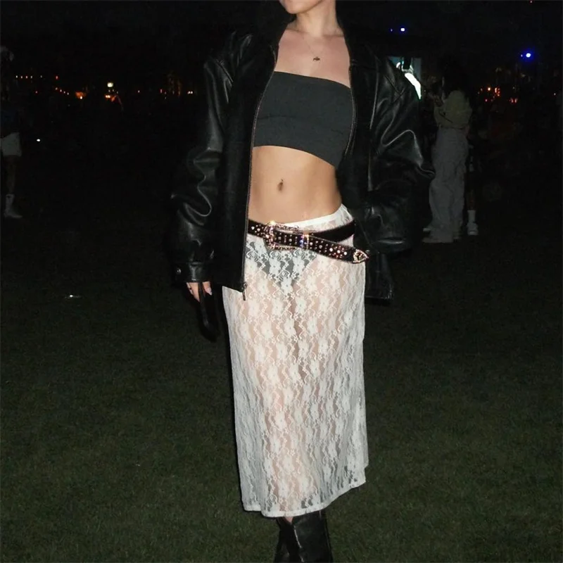Women Y2K Fairy Grunge Midi Skirt Lace Floral Vintage Boho Elastic High Waist Bodycon Skirt 90s E-Girls Holiday Party Clubwear