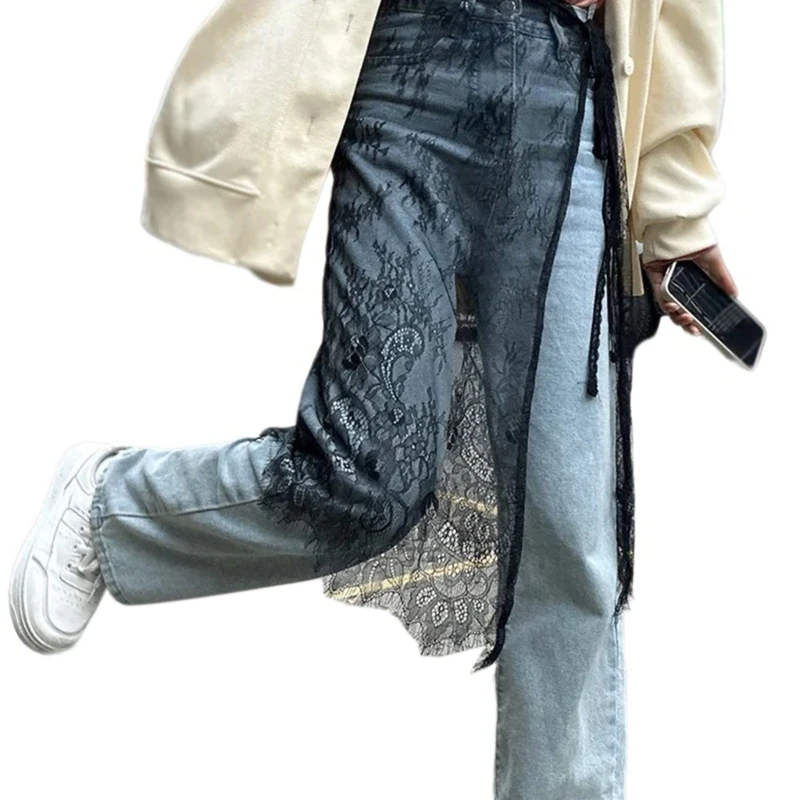 Name | Women Aesthetic See Through Eyelash Lace Apron Skirt Vintage Tie Up Flower Pattern Sheer Covering Overskirt Streetwear Dropship |