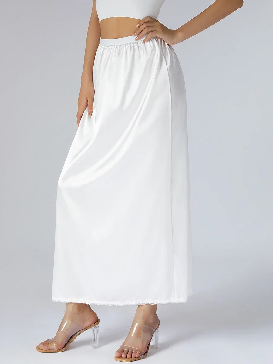 Women Half Slip Underskirt Solid Color Elastic Waist Inner Lining Midi Skirt Long Underskirt for Ladies Spring Autumn Clothing