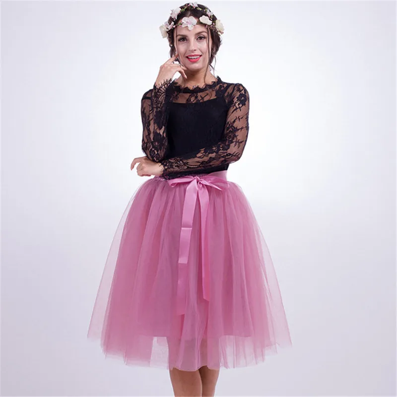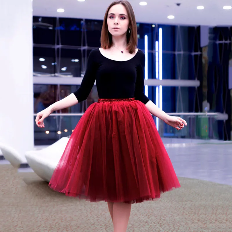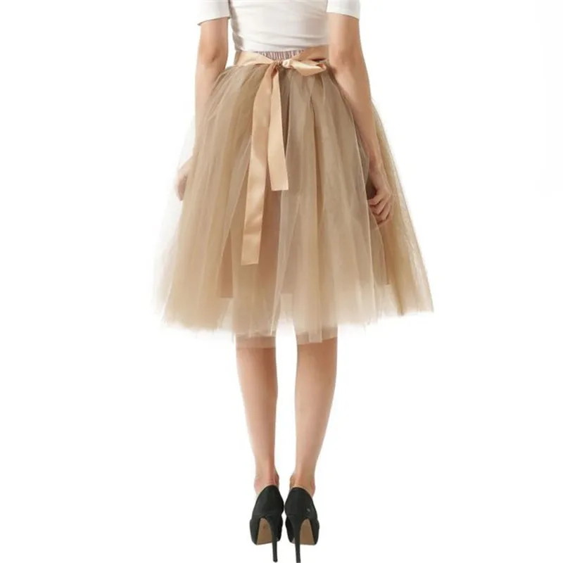 5 Layers 65cm Fashion Tulle Skirt Pleated TUTU Skirts Womens Lolita Petticoat Bridesmaids Midi Skirt Jupe Saias faldas