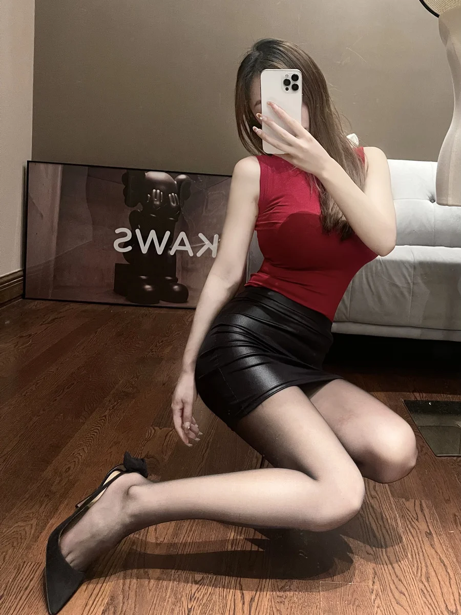 Black Slim Imitation Leather Pencil Mini Skirt High Waist Sexy Fashion Korean Short Skirts Women Wholesale Summer Sweet 7ST