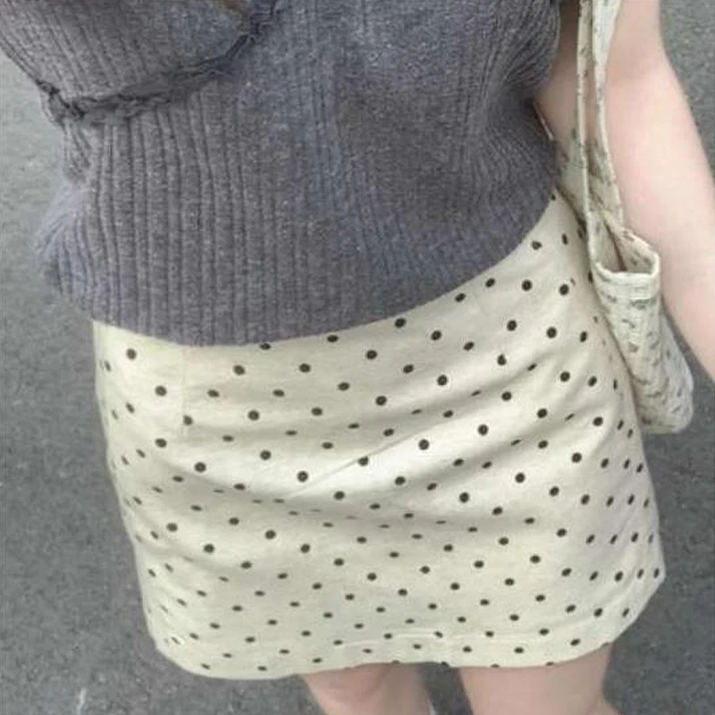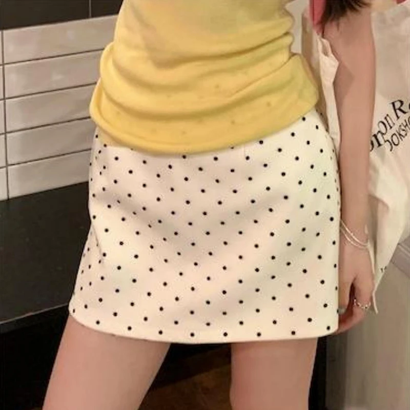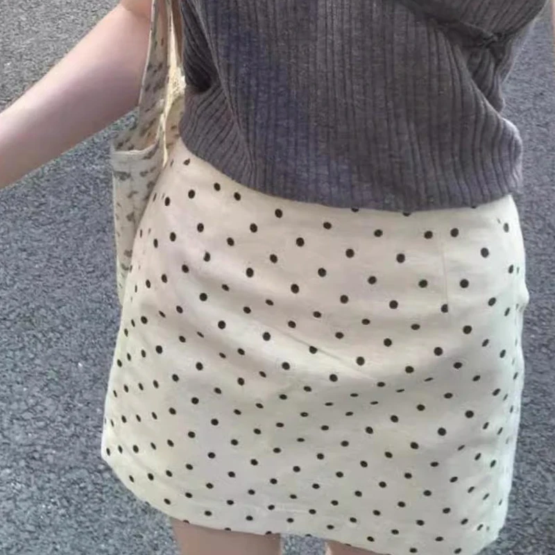 Korean Style Fashionable half-top skirt And Sweet High-Waisted Polka-Dot Knitted Stretch A-Line Skirt