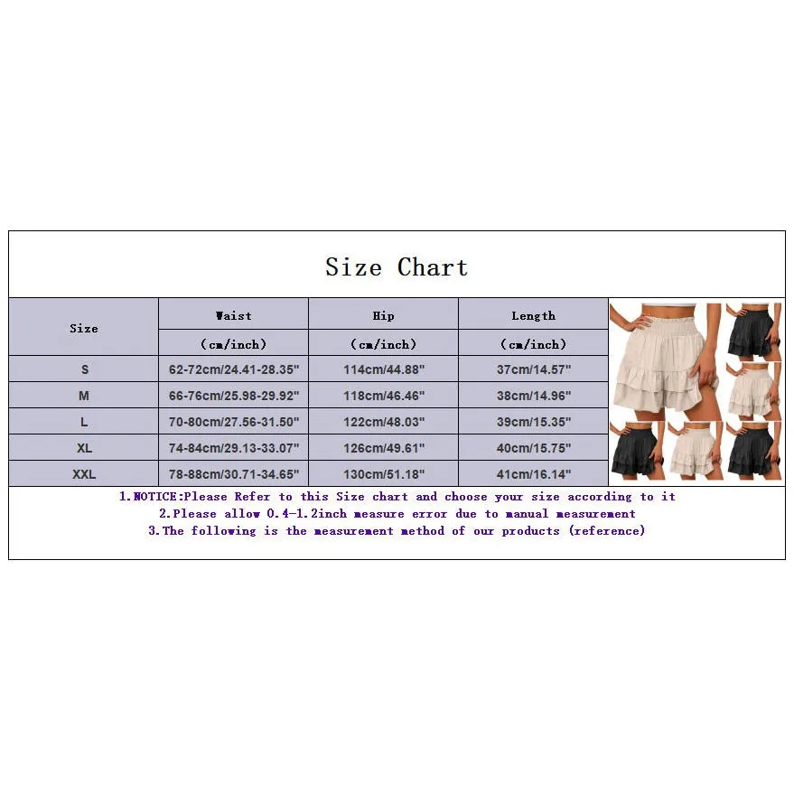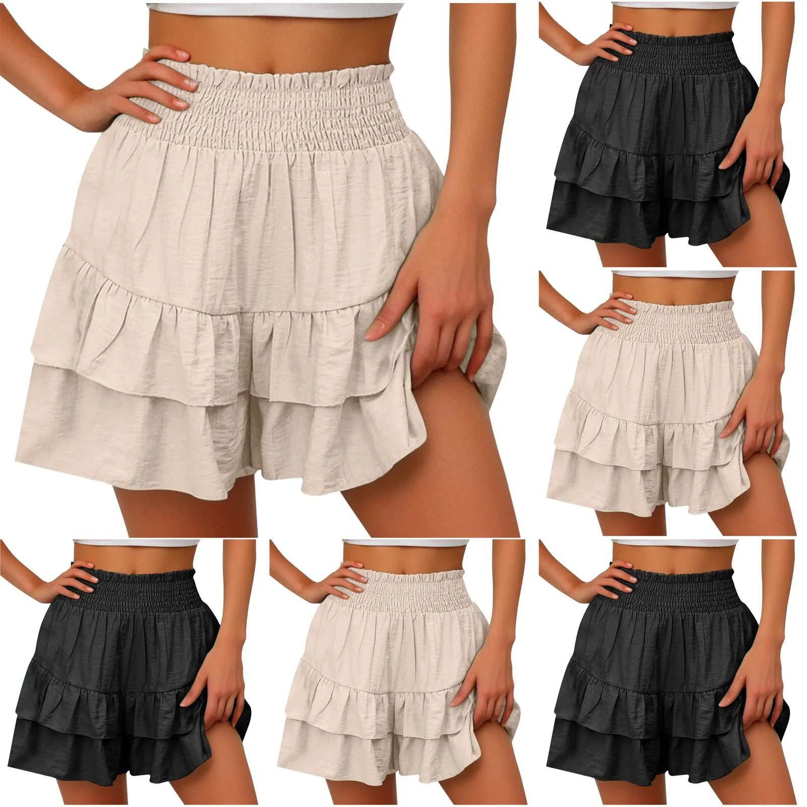 Summer Women Shorts Double-layered Ruffle Shirring Elastic High Waist Shorts Solid Color Vacation Beach Yoga Fitness Mini Shorts