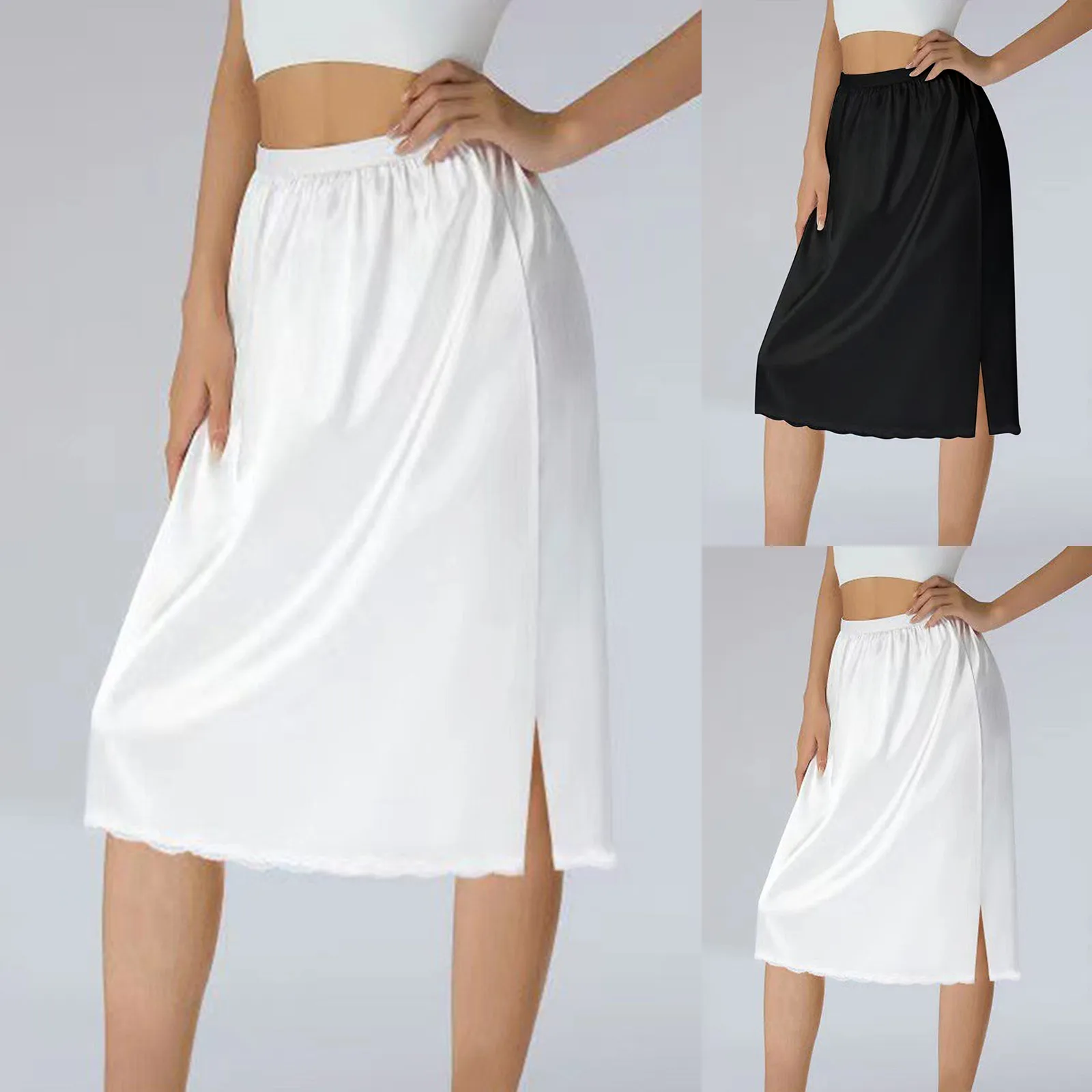 Name | 2024 Womens Half Slips Elastic Waist Skirt Solid Color Underskirt Lace Trim Skirt For Extender Under Dresses Female Clothing |