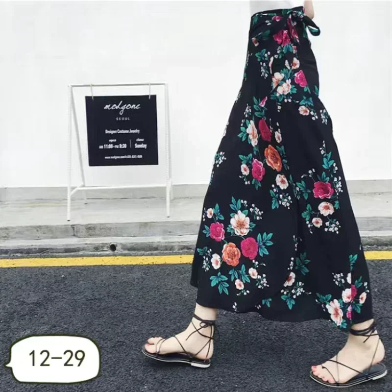 One Piece Split Print Lace Wrap Y2K Skirt Holiday Women High Waist Bodycon Skirt Irregular Beach Skirt Wrap Skirts Women