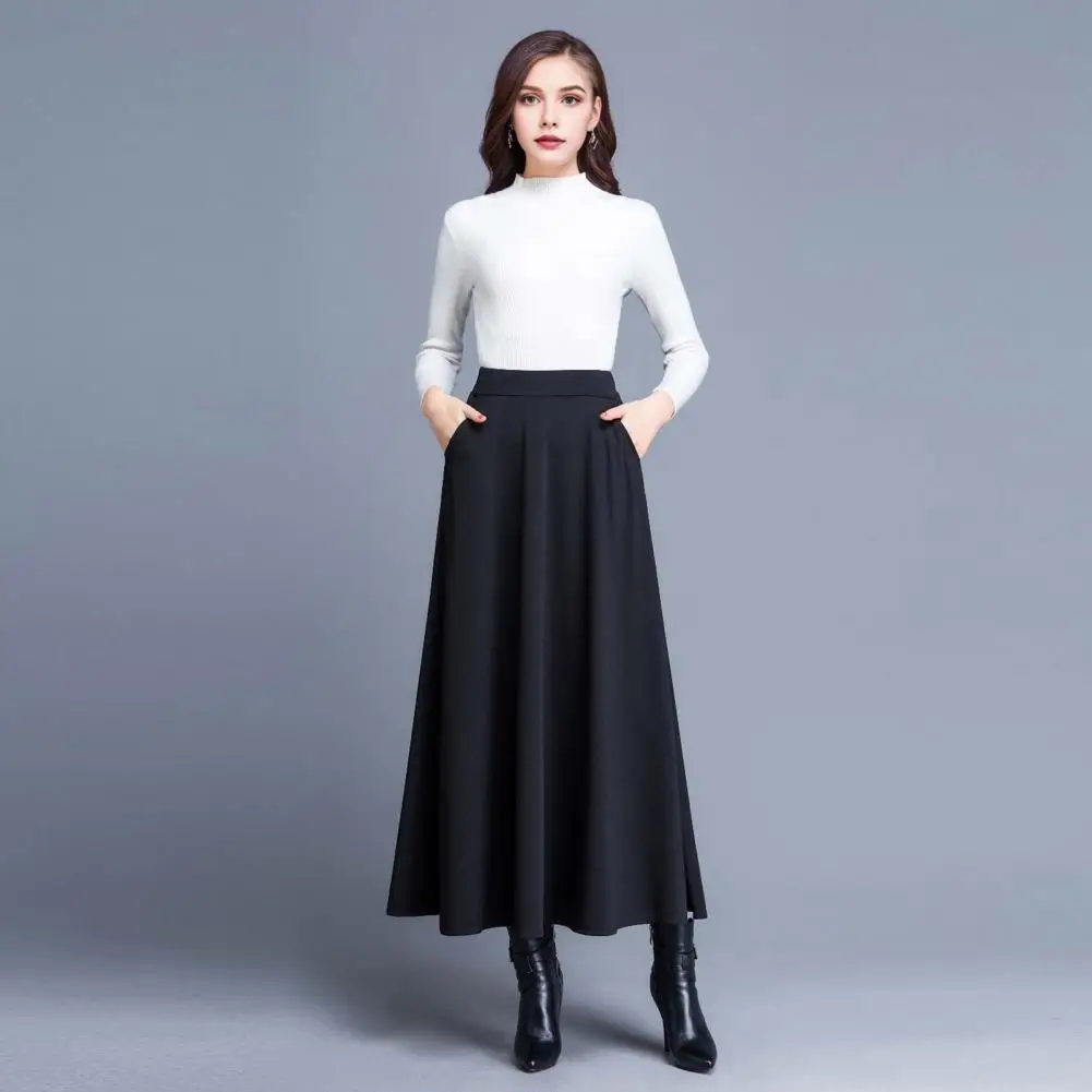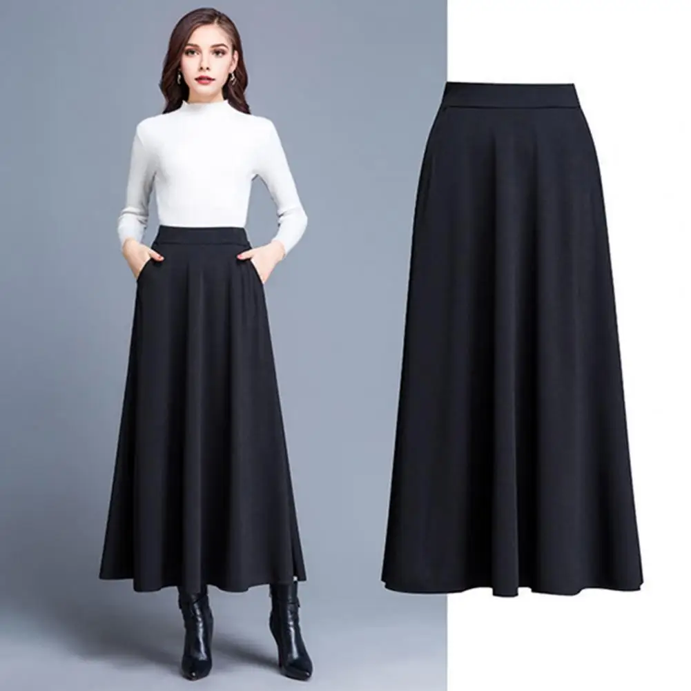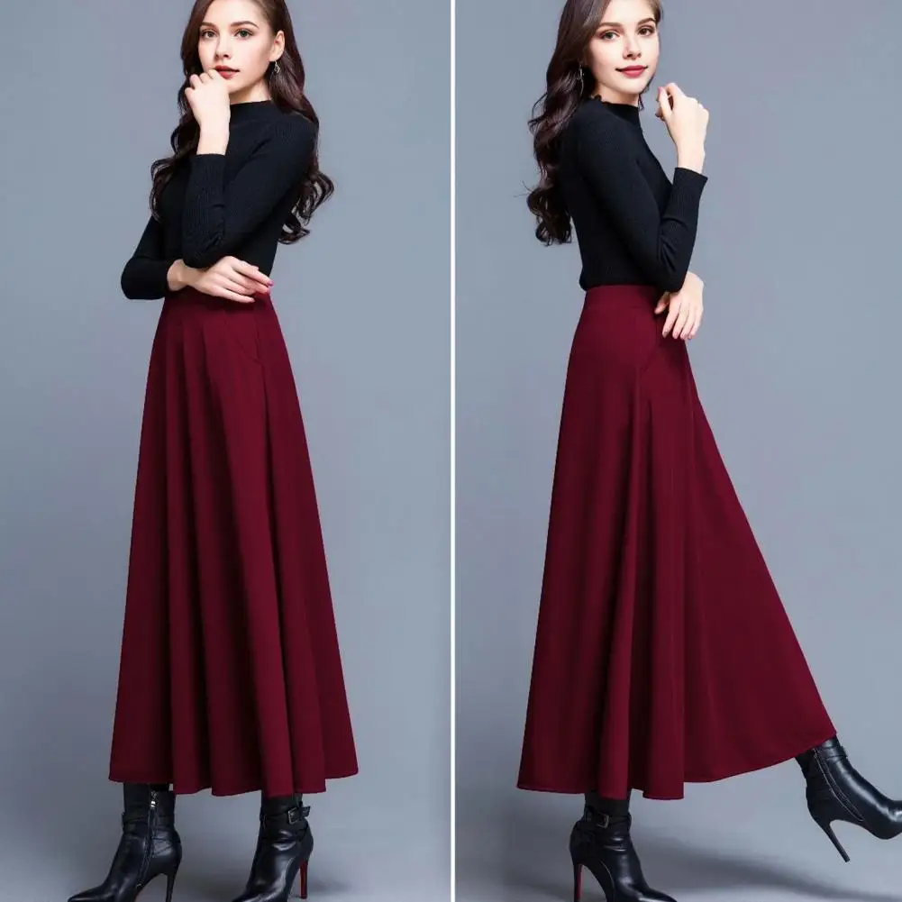 Vintage Red High Waist Pleated Skirt Women Korean Fashion College Style Long Skirt Ladies Autumn Casual A Line Skirts Office