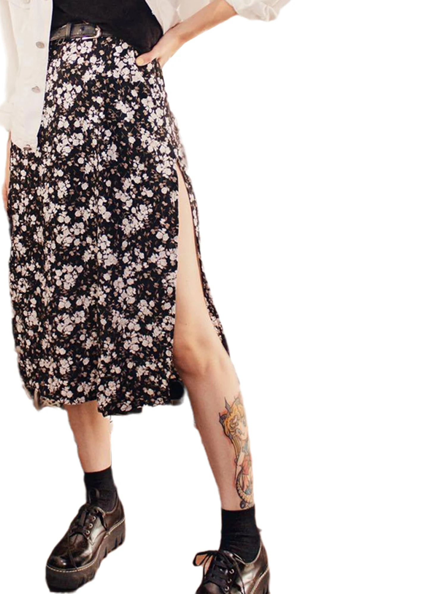 Name | Ladies Summer Leopard Print/Flower Print High-Waisted Skirt Girls Thigh Stitching Slit Fashionable and Sexy Skirt Black/Brown |