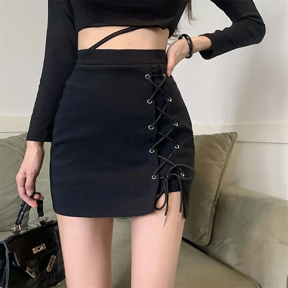 Spring Summer High Waist Mini Skirt For Women Sexy Tight Strap Black Short Skirt Street Style Gothic Y2K Tight Skirt