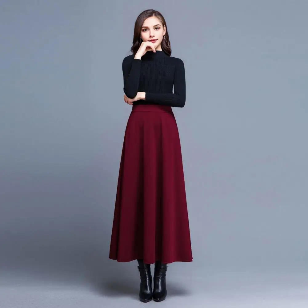 Large Hem High Waist Skirt Elegant Women's Maxi Skirt Collection High Waist A-line Skirt with Pockets Solid Color for Stylish