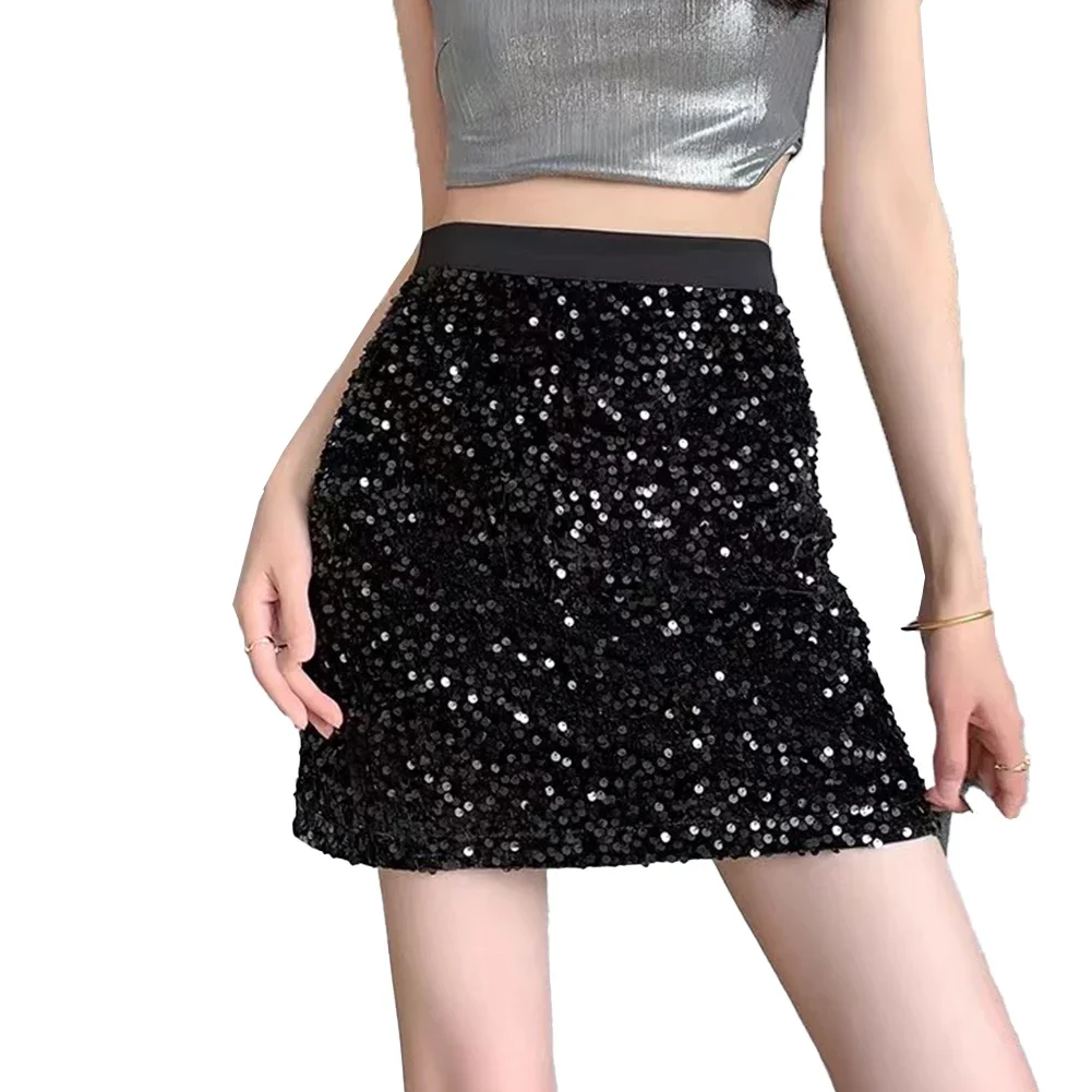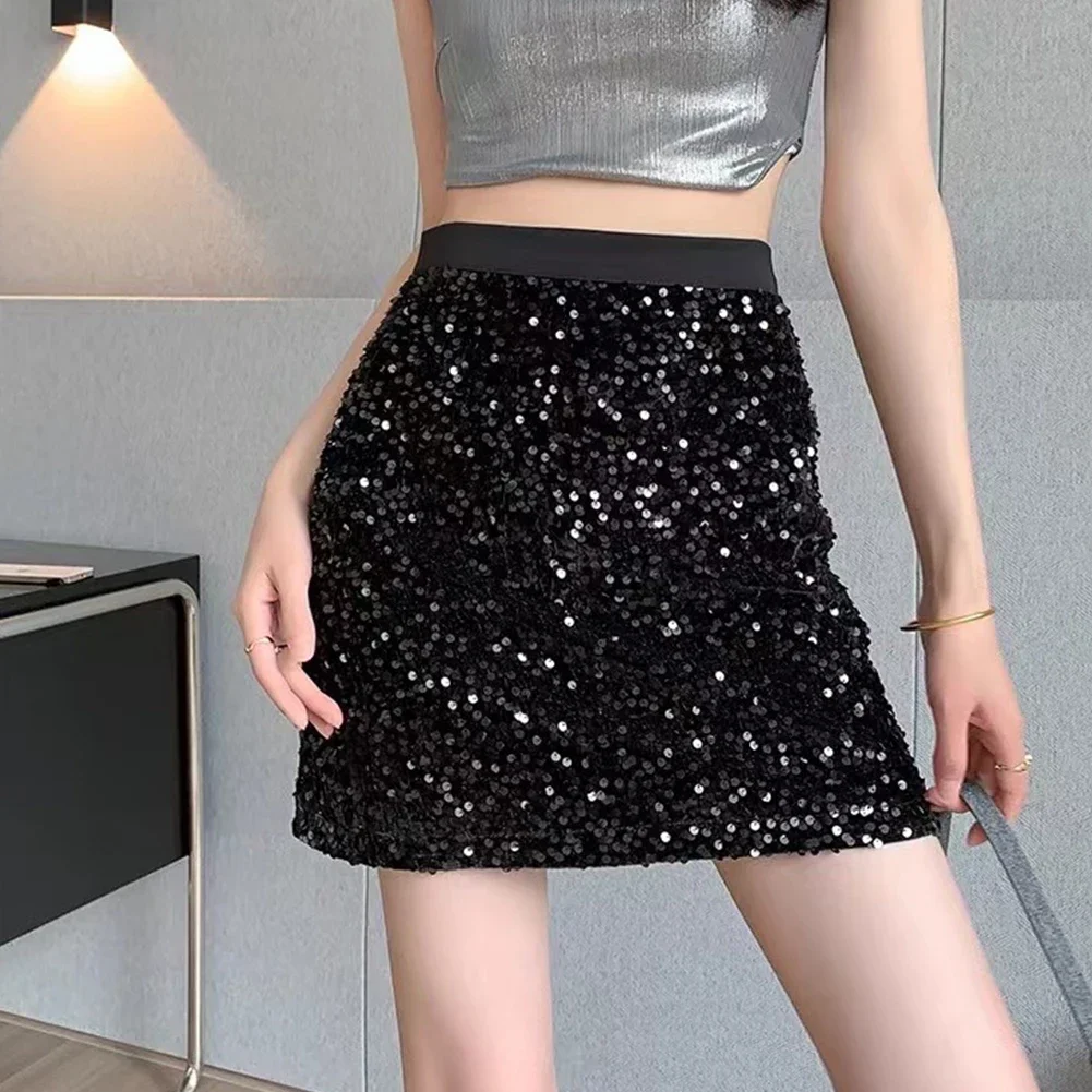 Name | Women's Fashion Sequin Short Skirt Sexy Slim Fit Solid Colour Sequin Short Nightclub Skirt High Waist Versatile Short Half Skirt |