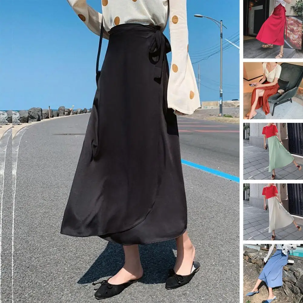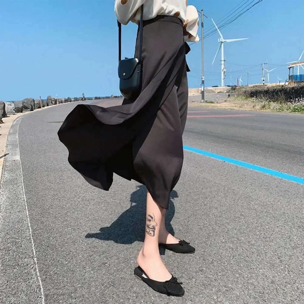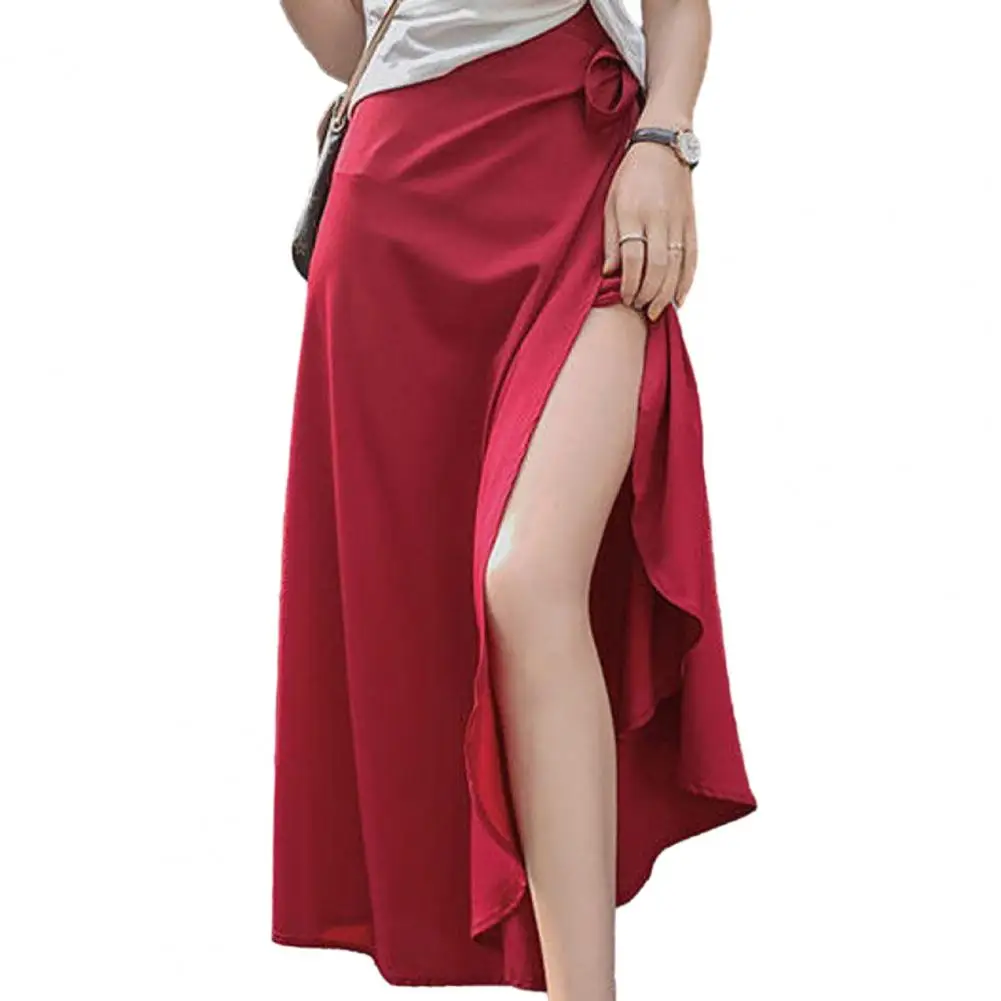 Stylish Women Long Skirt Split Breathable Maxi Wrap Skirt Tie Waist A-line Wrap Skirt