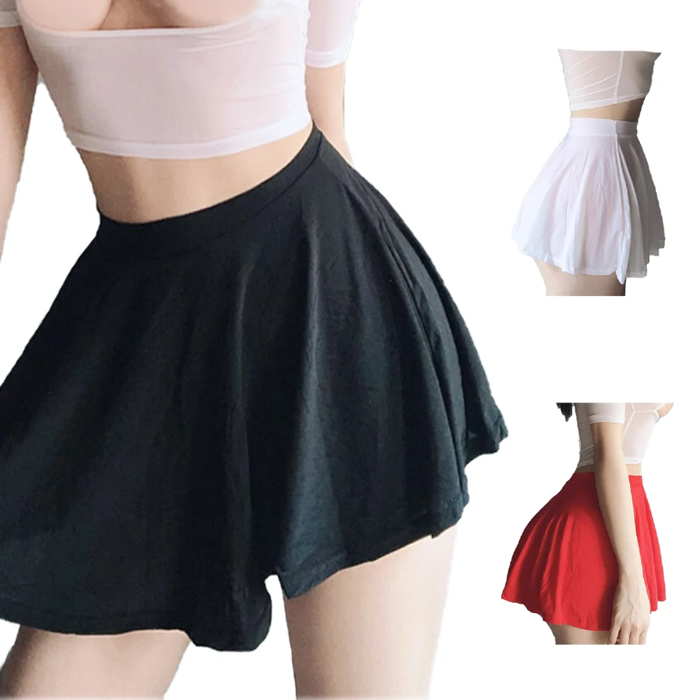 Sexy Skirt 2023 Solid Color Ice Silk Lotus Leaf Pendulum Transparent Nightclub Party Mini Skirts Women Jupe Femme Faldas Korean